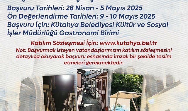 (KÜTAHYA)- Kütahya Belediyesi'nin 17 Mayıs - 19 Ekim arasında düzenleyeceği "Kütahya Yöresel Lezzetleri ve El Sanatları” organizasyonunda ev yapımı gıdaların ve el emeği ürünlerin yer alacağı stantlarda satış yapmak isteyenler için başvurular başladı. Kütahya Belediyesi, "Kütahya Yöresel Lezzetleri ve El Sanatları” organizasyonuna ev sahipliği yapacak. Organizasyon, 17 Mayıs - 19 Ekim 2025 tarihleri arasında, cumartesi ve pazar günleri saat 10.00-20.00 arasında Germiyan Sokak’ta gerçekleştirilecek. Vatandaşlar, ev yapımı gıda ürünleri veya el emeği ürünlerle stantlarda yerini alabilecek. Stantlar düzenli olarak yetkililer tarafından kontrol edilecek ve koşulları sağlamayan stantlarda satış yapılmasına izin verilmeyecek.Başvurular, 28 Nisan- 5 Mayıs arasında Kütahya Belediyesi Kültür ve Sosyal İşler Müdürlüğü Gastronomi Birimi'ne yapılacak, ön değerlendirme ise 9-10 Mayıs günlerinde gerçekleştirilecek. Başvuruda bulunmak isteyen vatandaşların, 'www.kutahya.bel.tr' adresinden ulaşabilecekleri katılım sözleşmesini detaylı bir şekilde okuyarak imzalı bir şekilde teslim etmeleri gerektiği belirtildi.