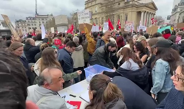 (ANKARA) - İstanbul Büyükşehir Belediye Başkanı Ekrem İmamoğlu'nun gözaltına alınmasının ardından düzenlenen protesto gösterileri, yurt dışında da devam ediyor. İngiltere’nin başkenti Londra’daki gösterilerde çok sayıda gurbetçi bir araya gelerek gözaltılara tepki gösterdi. Gösteriler sırasında İmamoğlu'na destek olmak amacıyla sembolik bir sandık kurularak oy kullanıldı.İstanbul Büyükşehir Belediye Başkanı Ekrem İmamoğlu ve beraberinde çok sayıda kişinin gözaltına alınmasından sonra düzenlenen protesto gösterileri, yurt dışında da devam ediyor. İngiltere’nin başkenti Londra’nın Trafalgar Meydanı'nda bir araya gelen çok sayıda gurbetçi, protesto gösterisi ve yürüyüş düzenledi.Göstericiler, Trafalgar Meydanı'nda toplanıp, Downing Street 10 Numara'ya İngiltere Başbakanı Kier Starmer’ın konutuna kadar yürüdü. Meydanda toplananlar, marşlar, şarkılar ve ellerindeki dövizlerle, “Gün gelecek, devran dönecek, AKP halka hesap verecek” ve "Susma, sustukça sıra sana gelecek" sloganlarını attı.Protestolara katılanların aktardığına göre; CHP'nin yarın yapacağı ön seçimlerinde kurulacak sandık, Ekrem İmamoğlu'na destek için sembolik olarak eylemde de kuruldu. Oylamaya katılan çok sayıda kişi, Ekrem İmamoğlu'nun adının yazdığı pusulaları sandığa attı.