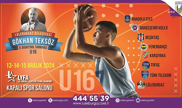 (KIRKLARELİ)- Türk basketbolunun köklü kulüplerinin U-16 takımlarının yer alacağı 'Lüleburgaz Belediyesi Gökhan Teksöz 6. Basketbol Turnuvası', 13-14-15 Aralık’ta LYFA Kapalı Spor Salonu'nda gerçekleştirilecek. Turnuvada Anadolu Efes, Bahçeşehir Koleji, Beşiktaş, Fenerbahçe, Karşıyaka, Lüleburgaz, Tofaş ve Türk Telekom takımları mücadele edecek.Basketbolun devleri 13-14-15 Aralık’ta Lüleburgaz Yıldızları Futbol Akademisi’nde sahaya çıkıyor. Lüleburgaz Belediyesi’nin Gökhan Teksöz’ün anısını yaşatmak adına 6’ncısını düzenlediği 'Lüleburgaz Belediyesi Gökhan Teksöz 6. Basketbol Turnuvası', 13-14-15 Aralık’ta Lüleburgaz Yıldızları Futbol Akademisi’nde gerçekleştirilecek. Turnuvaya bu yıl Anadolu Efes, Bahçeşehir Koleji, Beşiktaş, Fenerbahçe, Karşıyaka, Lüleburgaz, Tofaş ve Türk Telekom U-16 takımları katılacak.Dostluk çerçevesinde gerçekleştirilecek turnuva, 3 gün boyunca kıyasıya rekabete sahne olacak.