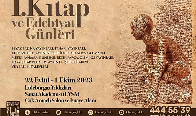 Lüleburgaz Belediyesi 22 Eylül ile 1 Ekim günleri arasında Lüleburgaz Yıldızları Sanat Akademisi’nde çok sayıda yazar ve yayınevinin yer alacağı Lüleburgaz 1. Kitap ve Edebiyat Günleri’ne ev sahipliği yapacak."Kentler kültür üretir" anlayışıyla çalışmalarını sürdüren Lüleburgaz Belediyesi, kitapseverlerin uzun yıllardır heyecanla beklediği 1. Kitap ve Edebiyat Günleri’ni düzenleyecek. LYSA Çok Amaçlı Salon’da gerçekleştirilecek 1. Kitap ve Edebiyat Günleri’ne birbirinden ünlü yazarlar konuk olacak.Tam 10 gün boyunca dolu dolu aktivitelerle sürecek Lüleburgaz Belediyesi 1. Kitap ve Edebiyat Günleri’nde ünlü yazarların imza günlerinin yanı sıra söyleşiler de gerçekleştirilecek. Etkinlikte, Beyaz Balina Yayınları, İthaki Yayınları, Kırmızı Kedi Yayınevi, Koridor, Arkadya, Go, Martı, Metis, Panama, Günışığı, Eksik Parça, Olimpos Yayınları, Hayy Kitap, Pegasus, Ayrıntı, İşler Kitabevi ve yerel kitabevleri yer alacak.