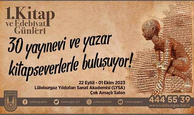 Lüleburgaz Belediyesi, 22 Eylül-1 Ekim günleri arasında 1. Kitap ve Edebiyat Günleri’ne ev sahipliği yapacak. Şair ve yazar Şükrü Erbaş'ın onur konuğu olarak katılacağı etkinlikte Türk edebiyatının son dönemdeki en popüler ‘polisiye roman’ yazarlarından Ahmet Ümit başta olmak üzere birbirinden değerli yazarlar kitaplarını imzalayacak.Lüleburgaz Belediyesi, 1. Kitap ve Edebiyat Günleri ile kitapseverleri bir araya getirecek.22 Eylül’de saat 16.00’da resmi açılışı yapılacak 1. Kitap ve Edebiyat Günleri’ne yerel ve ulusal düzeyde yayınevleri ve yazarlar katılacak.Lüleburgaz Yıldızları Sanat Akademisi Çok Amaçlı Salon’da düzenlenecek 1. Kitap ve Edebiyat Günleri’nde 30 yayınevi ve yazar, 10 gün boyunca Lüleburgazlıları edebiyat dolu bir yolculuğa çıkaracak.AHMET ÜMİT, OKURLARIYLA BULUŞACAKOnur konuğunun şair ve yazar Şükrü Erbaş olacağı 1. Kitap ve Edebiyat Günleri kapsamında söyleşiler ve imza günleri düzenlenecek.