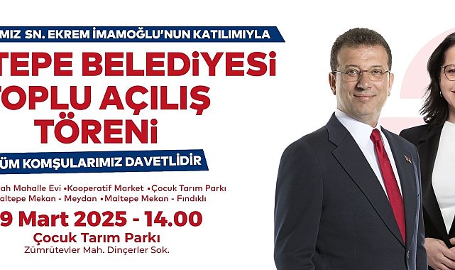 (İSTANBUL) - Maltepe Belediyesi, yeni hizmete açılacak birimlerinin toplu açılış törenini 19 Mart Çarşamba günü düzenleyecek. Törene İstanbul Büyükşehir Belediye (İBB) ve Türkiye Belediyeler Birliği (TBB) Başkanı Ekrem İmamoğlu da katılacak.Maltepe Belediyesi yeni hizmete açılacak birimleri, 19 Mart Çarşamba günü saat 14.00’te Zümrütevler Mahallesi Dinçerler Sokak’ta bulunan Çocuk Tarım Parkı’nda düzenlenecek törenle hizmete girecek. Törene İstanbul Büyükşehir Belediye (İBB) ve Türkiye Belediyeler Birliği (TBB) Başkanı Ekrem İmamoğlu da katılacak.“Maltepe’ye yeni hizmet birimleri”Törende, tamamlanan Feyzullah Mahalle Evi, Kooperatif Market, Çocuk Tarım Parkı, Maltepe Mekan Meydan ve Maltepe Mekan Fındıklı’daki hizmet birimleri Maltepelilerin kullanımına açılacak. Törende Ekrem İmamoğlu ve Maltepe Belediye Başkanı Mimar Esin Köymen’in birer konuşma yapması bekleniyor.“Mahalleliler için yeni buluşma noktası”Mahalle kültürünü canlandırmak ve komşuluk ilişkilerini güçlendirmek amacıyla Feyzullah Mahalle Evi de açılış kapsamında hizmete girecek. Kütüphane, ücretsiz kurslar için atölye odaları ve bir kafe alanı bulunan Mahalle Evi, mahalle sakinlerine sosyal ve kültürel açıdan zengin bir buluşma noktası sunmayı hedefliyor.“Çocuklar için Tarım Parkı açılıyor”Beş bin metrekarelik alana sahip Çocuk Tarım Parkı’nda, çocuklara tarım hakkında bilgi ve deneyim kazandırılması amaçlanıyor. Bin metrekarelik alanda 42 adet ekim tarhı oluşturulurken, çeşitli sebze ve meyve yetiştiriciliği yapılabilecek. Ayrıca 300 metrekarelik piknik alanı da ailelerin kullanımına sunulacak.“Kooperatif Market ile güvenli gıda” Maltepe Belediyesi, Kooperatif Market ile doğal ve sürdürülebilir üretimi teşvik etmeyi hedeflerken, güvenli, sağlıklı ve temiz gıdayı doğrudan üreticiden tüketiciye ulaştıracak. Belediye tarafından hayata geçirilen "Mekan" ismini taşıyan sosyal tesislerde, geniş ürün yelpazesiyle uygun fiyatlara güvenilir ve kaliteli hizmet sunulacak.