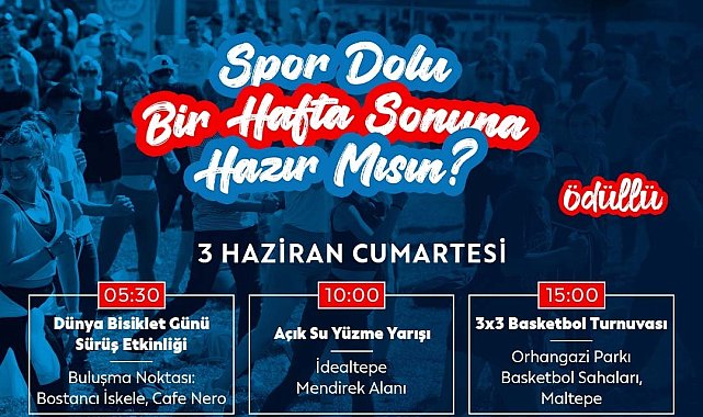 Maltepe Belediyesi, tüm ilçe halkını bu hafta sonu boyunca devam edecek Spor Festivali’nde konuk etmeye hazırlanıyor. Maltepe Belediyesi Spor İşleri Müdürlüğü’nün 3-4 Haziran günlerinde ücretsiz düzenleyeceği festival, Maltepe Orhangazi Şehir Parkı Rekreasyon Alanı’nda gerçekleşecek.Festival 3 Haziran Cumartesi günü Dünya Bisiklet Günü’nde saat 05.30’da Bostancı iskele, Cafe Nero önünde sürüş etkinliğiyle başlayacak. Saat 10.00’da İdealtepe mendirek alanında açık su yüzme yarışı, saat 15.00’te Orhangazi Parkı basketbol sahalarında basketbol turnuvası yapılacak.4 Haziran Pazar günü saat 12.00’de ise beach voleybol, 15.00’te plaj futbolu turnuvası düzenlenecek. Ayrıca 13.00-20.00 saatleri arasında futboldan tırmanışa, patenden bisiklete yirmiden fazla spor deneyim alanında etkinlikler, ödüllü turnuvalar, sürpriz hediyeler ve ücretsiz bisiklet atölyesi düzenlenecek.