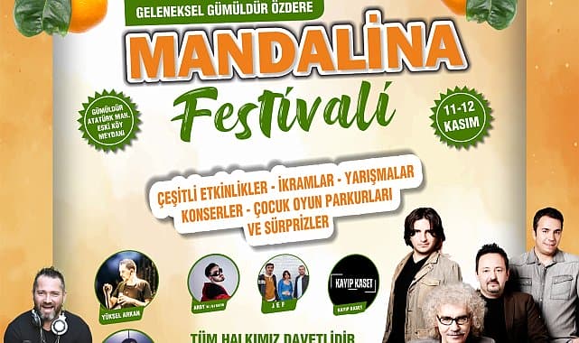 Menderes Belediyesi tarafından düzenlenecek Geleneksel Gümüldür-Özdere Mandalina Festivali 11-12 Kasım tarihlerinde gerçekleşecek. Yeni Türkü Grubu da festivalde sahne alacak.Menderes Belediyesi tarafından Geleneksel Gümüldür-Özdere Mandalina Festivali 11-12 Kasım tarihleri arasında Gümüldür Eski Köy Meydanı’nda yapılacak. 2 gün boyunca mandalinaya dair her şeyin yer alacağı festival renkli görüntülere sahne olacak.COŞKUYLA KUTLANACAKFestival kapsamında çeşitli etkinlikler, ikramlar, yarışmalar, konserler, çocuk oyun parkurları ve çeşitli sürprizler katılımcılarla buluşacak. Etkinliğin ilk gününde çocuk koşusu, kortej yürüyüşü, Ersin şov, halk dansları, en iyi mandalina üreticileri yarışması, Kayıp Kaset konseri, yemek yarışması, sihirbaz gösterisi, Jef konseri ve Yüksel Arkan konseri olacak. Menderes Belediyesi Geleneksel Gümüldür-Özdere Mandalina Festivali’nin ikinci günü ise Ersin şov ile başlayacak. Ersin şov sonrası Ardy konseri gerçekleşirken konser sonrası müzikli balon şov ile çocuk yarışmacıların katılımıyla en iyi mandalina kostümü ve çılgın saç yarışması yapılacak. En iyi mandalina tatlısının da seçileceği festivalin ikinci gününde sihirbaz gösterisi, flemenko dans gösterisi, Gözde Buldaş konseri gerçekleşecek. Festival Yeni Türkü konseri ile son bulacak.MANDİ VE MANDİLA FESTİVAL ALANINDAMenderes Belediyesi Geleneksel Gümüldür-Özdere Mandalina Festivali’nin maskotları Mandi ve Mandila da festival alanında katılımcıları karşılayacak. Festivale katılanlar için çeşitli hediyeler hazırlayan Mandi ve Mandila sürprizleriyle festivale renk katacak.‘’MANDALİNANIN CENNETİNE BEKLİYORUZ’’ Festivali coşkuyla gerçekleştireceklerini ifade eden Menderes Belediye Başkan Vekili Erkan Özkan, ‘’ Menderesimizin önemli ürünleri arasında yer alan satsuma mandalinasının tanıtımına yönelik gerçekleştirdiğimiz çalışmalarımız kapsamında her yıl düzenlediğimiz ve gelenekselleşen Gümüldür Özdere Mandalina Festivalimizi 11-12 Kasım tarihlerinde gerçekleştireceğiz. 2 gün boyunca mandalinaya dair çeşitli ürünler ve etkinlikler festivalimizde yer alacak. Mandalinanın cennetinde gerçekleşecek festivalimize tüm hemşehrilerimizi bekliyoruz’’ dedi.