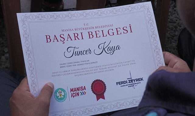 (MANİSA) - Manisa Büyükşehir Belediye Başkanı Ferdi Zeyrek, kent genelinde çıkan orman yangınlarında görev yapan itfaiye personeline başarı belgesi takdim etti. İtfaiyecilere emeklerinden dolayı teşekkür eden Başkan Zeyrek, ikramiye müjdesi de verdi.Manisa genelinde çıkan orman yangınlarında görev alan Manisa Büyükşehir Belediyesi İtfaiye Dairesi Başkanlığı personeline başarı belgesi takdim edildi. Manisa Büyükşehir Belediyesi İtfaiye Dairesi Başkanlığı’nda düzenlenen törene Başkan Zeyrek, İtfaiye Dairesi Başkanı Gürhan İnal ve belediye yöneticileri ile itfaiye personeli katıldı.Törende itfaiyecilere başarı belgesi takdim eden Başkan Zeyrek, yaptığı konuşmada şunları söyledi:“Sizler günlerce uykusuz kalıp, gerekirse hayatınızı hiçe sayıp yangının içine daldınız. Keşke hiç böyle şeylere gerek kalmasa. Maalesef gerek iklim değişikliklerinden bazen de vatandaşlarımızın duyarsızlıklarından dolayı ciğerlerimiz yanıyor. 2 ay önce Büyükşehir Belediye Meclisinden ufak da olsa ikramiye vermiştik. Bu ay tekrar meclisimizde bunu gündeme getireceğim. Sizlere tekrardan ikramiye vermek istiyorum. Çünkü siz orada mesai gözetmediniz, herhangi bir talepte bulunmadınız. Sadece orada yanan ormanlarımıza müdahale etmek adına gecelerce çalıştınız. Bazılarınız izinliydi, kendi özel aracıyla orman yangınına geldi. Bu fedakarlıktan dolayı bu belgeyi ve vereceğimiz ikramiyeyi sonuna kadar hak ediyorsunuz. Ananızın ak sütü gibi sizlere helal olsun. Bu birlikteliğimiz devam edecek ve inşallah hep iyi günlerde bir araya geleceğiz. Emeklerinizden dolayı sizlere teşekkür ediyorum. İyi ki varsınız.”