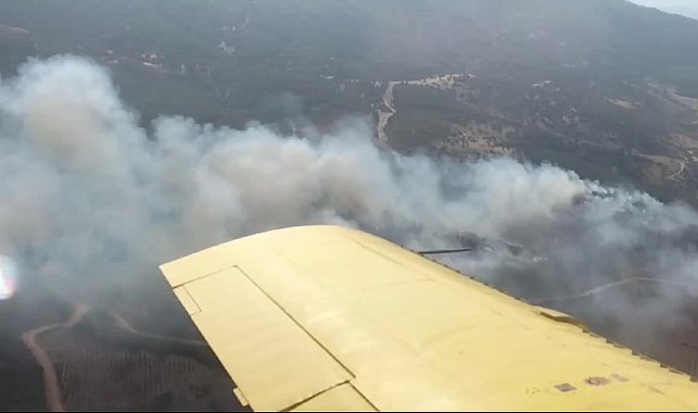 (MANİSA) - Manisa ili Gölmarmara İlçesinde ormanlık alanda yangın çıktı. Yangına ekiplerin havadan ve karadan müdahalesi devam ediyor.Manisa ili Gölmarmara İlçesi Ozanca Mahallesinde ormanlık alanda yangın çıktı.Saat 16.58’de çıkan yangına İzmir Orman Bölge Müdürlüğü ekipleri saat 17.08’de ilk müdahaleyi yaptı.Çıkış nedeni henüz tespit edilemeyen yangına 3 uçak, 6 helikopter, 20 arazöz, 3 su ikmal ve 3 dozer ile havadan ve karadan müdahale devam ediyor.