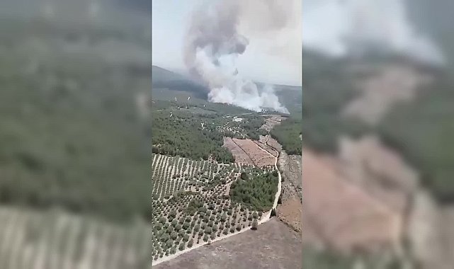 (MANİSA) - Manisa’nın Saruhanlı ilçesi Seyitoba Mahallesi'nde zirai alanda çıkan yangın ormana sıçradı. Yangını söndürmek için ekiplerin havadan ve karadan müdahalesi devam ediyor.Manisa’nın Saruhanlı ilçesi Seyitoba Mahallesinde bulunan ziraat arazisinde saat 13.20'de henüz belirlenmeyen bir nedenle yangın çıktı.Kısa sürede ormanlık alana sıçrayan yangına ekipler ilk müdahaleyi saat 13.30’da gerçekleştirdi.Yangını kontrol altına almak için İzmir Orman Bölge Müdürlüğüne ait 5 uçak, 13 helikopter, 38 arazöz, 12 su ikmal, 6 dozer ile havadan ve karadan müdahale devam ediyor.