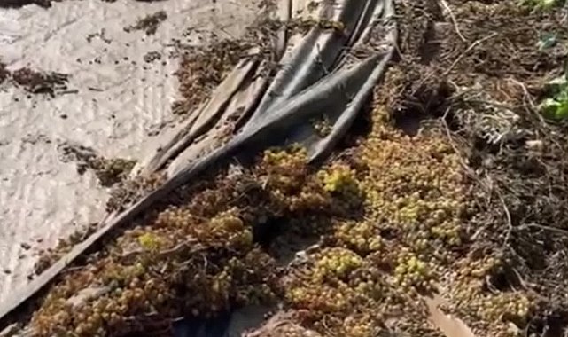 "Dün akşam Manisa'nın Salihli ilçesi Poyrazdamları, Yağbasan, Kara Savcı Mahallesi’nde aşırı yağış ve dolu yağışından sonra bağlarımız ve üzümlerimiz şu anda yerde. Sergideki üzümleri sel aldı götürdü. Mısır, pamuk, zeytin, her şey perişan halde. Yetkililere sesleniyoruz: Bizlerin Ziraat Bankası’na, kooperatiflere borçlarımız var. Bunların faizlerinin ötelenmesi gerekiyor. Devlet yanımızda olsun, halimizi görsün, gerçekten çok perişanız."