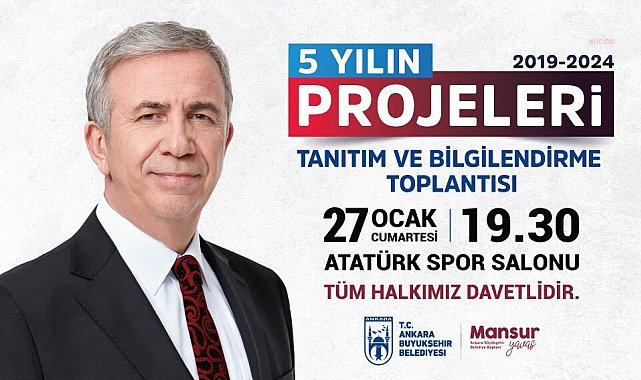 Ankara Büyükşehir Belediye Başkanı Mansur Yavaş, 5 yıllık görev döneminde kente kazandırılan yatırım projelerini Başkentlilere anlatacak. 2019-2024 yılları arasında gerçekleştirilen “5 Yılın Projeleri Tanıtım ve Bilgilendirme Toplantısı” 27 Ocak Cumartesi günü Atatürk Spor Salonu’nda düzenlenecek.