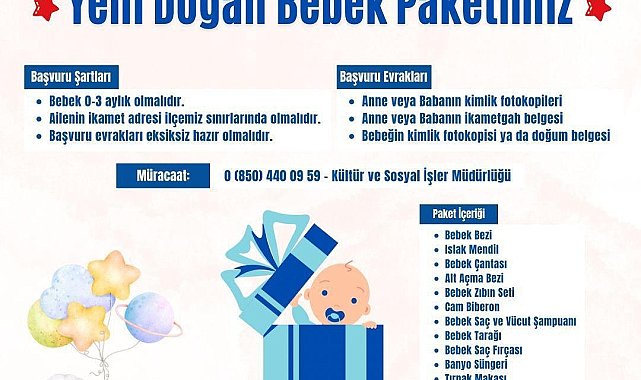 (TEKİRDAĞ)- Marmaraereğlisi Belediyesi'nin, ekonomik sıkıntı yaşayan yurttaşlara yönelik "Yenidoğan Destek Paketi" için başvuru süreci başladı.Marmaraereğlisi Belediyesi'nin, temel ihtiyaçlarını karşılamakta güçlük çeken ve yeni doğan bebeği olan ailelerin en mutlu günlerinde yanlarında olmak ve desteklemek için uyguladığı ‘Yenidoğan Destek Paketi’ için başvuru süreci başladı. 0-3 aylık bebeklere yönelik başlatılan proje kapsamında dağıtımı yapılacak destek paketlerinin içeriğinde bebek bezi, ıslak mendil, bebek çantası, alt açma bezi, bebek zıbın seti, cam biberon, bebek saç ve vücut şampuanı, bebek tarağı, bebek saç fırçası, banyo süngeri, tırnak makası, tırnak törpüsü bulunuyor.Destek paketinden yararlanmak isteyen ve ilçede ikamet eden 0-3 aylık bebeği olan aileler, Kültür ve Sosyal İşler Müdürlüğü’ne başvurabilecek. Başvuru süreciyle ilgili daha detaylı bilgi için '0850 440 0959' numaralı ile iletişime geçilebilecek.