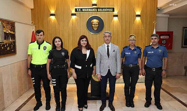 Marmaris Emniyet Müdürü olarak atanan Aycan Çakır Öztürk Marmaris Belediye Başkanı Mehmet Oktay’ı makamında ziyaret etti.Marmaris’in ilk kadın emniyet müdürü Aycan Çakır Öztürk Marmaris Belediye Başkanı Mehmet Oktay’a nezaket ziyaretinde bulundu. Öztürk’e ziyaretinde Emniyet Müdürlüğü’nün çeşitli birimlerinde görev alan personel de eşlik etti. Ziyaretten dolayı duyduğu mutluluğu dile getiren Belediye Başkanı Oktay, nazik ziyareti için Öztürk’e teşekkür ederek “Marmaris’in huzuru ve güvenliği için çalışan tüm emniyet mensuplarımıza Sayın Öztürk nezdinde kolaylıklar diliyorum” dedi.