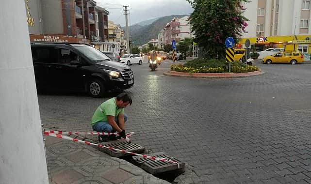 Yağmur nedeniyle 24 saat mesai yapan Marmaris Belediyesi ekipleri, ilçe genelinde olumsuzluk yaşanmaması için yoğun çaba harcadı.Marmaris Belediyesi ekipleri, eylül ayının ilk yağmurunda herhangi bir olumsuzluk yaşanmaması için yoğun çaba harcadı. Dün akşam saatlerinde başlayan sağanak yağmur nedeniyle Temizlik ve Fen İşleri Müdürlüğü personeli başta olmak üzere Zabıta Müdürlüğü, Park Bahçeler, Destek Hizmetleri ve diğer birimlerin çalışanları sahada teyakkuz halindeydi.Özellikle dere ve kanallarda taşma yaşanmaması için yağmur öncesi tedbirlerini alan ekipler, halk plajlarında dere ağızlarının ve yağmur büzlerinin ağızlarını açtı. Mazgal ve ızgaraları da açarak suyun daha kolay akmasını sağlayan ekipler, yağmur sırasında da tüm ilçede kontrollerini sürdürerek olumsuz etkileri en aza indirmek için çalıştı.Karacasöğüt Mahallesi’nde su baskını meydana gelen bir eve dalgıç pompa ile müdahale eden ekipler, yola devrilen ağacın da kaldırılmasını sağladı. Ayrıca yıldırım nedeniyle ilçenin bazı noktalarında yaşanan küçük çaplı yangınlara da Orman İşletme ve İtfaiye ekipleriyle birlikte müdahale etti.