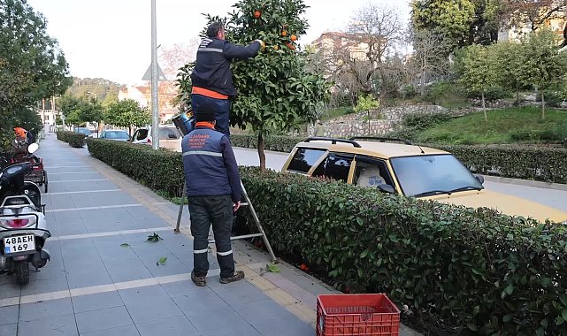 Marmaris’in sokaklarını süsleyen narenciye ağaçlarından toplanan turunçlar, halk pazarında vatandaşlara dağıtıldı. Marmaris Belediyesi ekiplerinin topladığı yaklaşık 400 kilogram turunç meyvesinin dağıtımına ilgi yoğun oldu.Marmaris’in cadde ve sokaklardaki mandalina ağaçlarından toplanan meyveleri Yerli Malı Haftası’nda öğrencilere ikram eden Marmaris Belediyesi, bu kez de turunçları toplayarak pazarda ücretsiz dağıttı.400 KG TURUNÇ DAĞITILDI4 yıldır düzenli olarak gerçekleştirilen çalışmada Park ve Bahçeler Müdürlüğü ekipleri, ilçe merkezindeki kaldırımlarda dikili ağaçların üzerindeki meyveleri tek tek topladı. Yaklaşık 400 kilogram turunç, poşetlendikten sonra Perşembe pazarında turunç reçelinin tarifiyle birlikte vatandaşlara ücretsiz olarak dağıtıldı. Kabuğundan reçel yapılabilen, çorbalarda ve salatalarda da kullanılabilen turunç meyvesine ilgi büyük oldu.MARMARİS’İN GÜZELLİĞİMarmaris’in kaldırımlarında sadece palmiye ağaçlarının veya süs bitkilerinin değil meyve ağaçlarının da bulunduğunu söyleyen Marmaris Belediye Başkanı Mehmet Oktay, “İklimimizin ve güzelliğimizin bir parçası olan meyve ağaçlarımızın da sürekli bakımını yapıyoruz. Yıllardır turunçları toplayıp halkımıza ikram ediyoruz. Geçen aylarda da mandalinaları çocuklarımıza dağıtmıştık. Herkese afiyet olsun” diye konuştu.