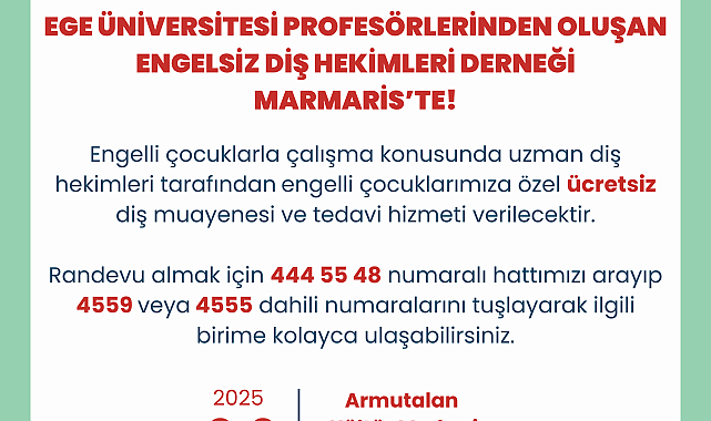 (MUĞLA)- Marmaris Belediyesi, ilçede bir ilki daha gerçekleştiriyor. Türkiye’nin en başarılı diş hekimleri, engelli çocuklara yönelik ağız diş sağlığı taraması yapmak ve yerinde tedavi gerçekleştirmek için Marmaris’e geliyor. Marmaris Belediyesi, Engelliler Haftası öncesi ilçede yaşayan engelli çocuklara yönelik ilk kez hayata geçirilecek bir hizmete imza atıyor. Belediye, engelli çocuklar için ücretsiz diş taraması ve yerinde tedavi gerçekleştiriyor. Engelsiz Diş Hekimleri Derneği ve Ege Üniversitesi iş birliği ile düzenlenecek muayene ve tedavi hizmeti Engelliler Haftası öncesi 8-9 Mayıs günlerinde yapılacak. Ege Üniversitesi profesörleri ve Engelsiz Diş Hekimleri Derneği’nden engelli bireylerle çalışma konusunda uzman diş hekimlerinin görev alacağı organizasyonda 200 çocuk faydalanabilecek.Günlük tedavi imkanı 100 engelli çocuk ile sınırlı olduğu için, çocukları ve aileleri bekletip yormamak adına muayeneler randevu usulü gerçekleştirilecek. Armutalan Kültür Merkezi giriş katında 09.30-16.00 saatleri arasında gerçekleştirilecek hizmetten faydalanmak isteyenlerin '444 55 48' numaralı belediye telefonunu arayarak '4559' veya '4555' dahili hatlardan randevu alması istendi.Belediye Başkanı Acar Ünlü de yapılacak çalışmanın çok değerli olduğunu belirterek, “Marmaris Belediyesi olarak çocuklarımızın sağlıklı, mutlu ve engelsiz bir yaşam sürmesi için çalışıyoruz. Bu yıl, Engelliler Haftası’nın hemen başında çok anlamlı bir etkinliği hayata geçiriyoruz. İzmir'den değerli zamanlarını ayırıp gelecek olan diş hekimlerimizin önemli desteğiyle Marmaris'teki engelli çocuklarımız için ilk kez böyle bir tarama ve tedavi çalışması yapacağız. Alanlarında Türkiye'nin en başarılı doktorlarından olan isimlerin Marmarisli çocuklar için geliyor olması bizim için çok anlamlı” diye konuştu.