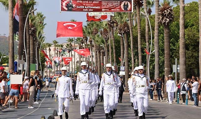 30 Ağustos Zafer Bayramı, Marmaris’te coşkuyla kutlanıyor. Resmi törenlerin gerçekleştiği kutlamalar akşam da Marmaris Belediyesi’nin düzenleyeceği fener alayı ve Tuğba Yurt konseriyle devam edecek.Sabah 09.30’da yapılan Atatürk Anıtı’ndaki çelenk sunum töreninde Kaymakam Ertuğ Şevket Aksoy, Aksaz Deniz Üs Komutanı Tuğamiral Neslim Eski, Marmaris Belediye Başkanı Mehmet Oktay, Başsavcıvekili Cumhuriyet Savcısı Burhanettin Güzel, siyasi parti temsilcileri, gaziler, şehit yakınları ve çok sayıda vatandaş katıldı. Kaymakamlık, Aksaz Deniz Üs Komutanlığı ve Belediye Başkanlığı adına çelenk sunumunun ardından saygı duruşunda bulunuldu ve İstiklal Marşının okundu. Çelenk sunma töreninin ardından Kaymakamlık binasında tebrikat töreni düzenlendi.