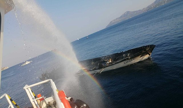 (MUĞLA) Marmaris Keçi Adası açıklarında bir gezi teknesinde yangın çıktı. Olayda 3'ü ağır 17 kişi yaralandı. Denizcilik Genel Müdürlüğü yolcuların ve 6 kişilik mürettebatın tahliyesinin tamamlandığını açıkladı.Olay akşam saatlerinde Marmaris İçmeler Keçi Adası yakınlarında yaşandı. Eagles adlı gezi teknesinde yolcularını alıp açıldıktan kısa süre sonra henüz belirlenemeyen bir nedenle yangın çıktı. Alevler ahşap teknenin büyük bölümünü hızla kaplarken yolcular denize atladı. Bölgeye sahil güvenlik ekipleri sevk edildi. Denizden alınan yolcular karaya çıkarılırken, yaralılar Muğla ve Marmaris'teki hastanelere kaldırıldı.Olaya ilişkin Denizcilik Genel Müdürlüğü'nden yapılan açıklamada şu bilgilere yer verildi:"Bugün saat 16:25’te Marmaris Keçi Adası yakınlarında EAGLES gezinti teknesinde çıkan yangında, 96 yolcu ve 6 mürettebat tahliye edilmiştir. Olayda 14'ü hafif, 3'ü ağır olmak üzere 17 kişi yaralanmıştır. Tekne tamamen batmış olup, idari tahkikat başlatılmıştır"