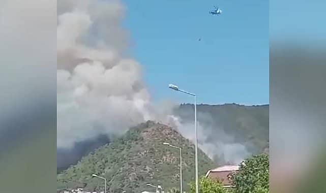 ESMA TURANMuğla’nın Marmaris ilçesinde orman yangını çıktı.Marmaris’e bağlı Sarıana Mahallesi’nde askeri lojmanların karşısında bulunan ormanlık alanda bugün saat 15:40 sıralarında henüz bilinmeyen nedenle yangın başladı. İhbar üzerine bölgeye Muğla Orman Bölge Müdürlüğü’ne bağlı ekipler ve Muğla Büyükşehir Belediyesi’ne bağlı itfaiye ekipleri sevk edildi.Yangına 8 helikopter ve 5 uçak ile havadan müdahale ediliyor.