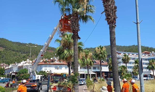 Marmaris Belediyesi, ilçe genelindeki palmiye ağaçlarının dönemsel budamaları için çalışma başlattı.Marmaris’in sembolü haline gelen palmiye ağaçları, Marmaris Belediyesi Park ve Bahçeler Müdürlüğü tarafından bakıma alındı. Marmaris’te meydana gelen yangınlarda çam ağaçlarının zarar görmesi üzerine besinleri azalan arıların palmiye tohumlarından beslenmesi için geçen yıl geç budama yapılmıştı. Doğanın tekrar canlanmasıyla bu yıl zamanında çalışma yapılmaya başlandı. Çalışmanın Marmaris’in tüm bölgelerinde program dahilinde yapılacağı belirtildi.Konuyla ilgili açıklama yapan yetkililer, palmiyelerin kuruyan yapraklarının düşmesiyle yarattığı tehlikenin dışında görüntü kirliliğine de neden olduğunu belirterek, yıllık bakımlarının aksatılmadan yapıldığını kaydetti.