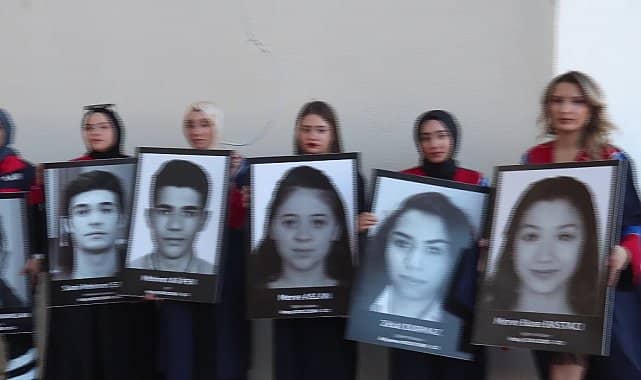 Burdur Mehmet Akif Ersoy Üniversitesi (MAKÜ) 2022-2023 akademik yılı mezuniyet töreninde yeni muzunlar, 6 Şubat depreminde hayatını kaybeden okul arkadaşlarını unutmadı.