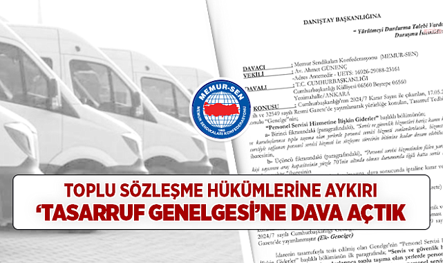 (ANKARA)- Memur Sendikaları Konfederasyonu (Memur-Sen), Kamuda Tasarruf Tedbirleri Genelgesi'ndeki Personel Servis Hizmetine İlişkin Giderler başlıklı bölümünün, personel servis hizmetinin sona erdirilmesine yol açacak kararlarının yürütmesinin durdulması ve iptali için dava açtı.Danıştay 12. Dair Başkanlığı'na başvuran sendika yetkilileri, söz konusu Genelge'nin Anayasa’ya, ILO normlarına, uluslararası sözleşmelere, 4688 sayılı Kanun'a, 'Toplu Sözleşmenin Özerkliği', 'Hukuk Devleti', 'Belirleme Yetkisi', 'Kolektif Serbest Pazarlık' ve 'Katılımcılık' ilkelerine aykırı olduğunu kaydetti. Genelge ile toplu sözleşme hakkının ihlal edildiğine dikkati çeken sendika yetkilileri, başvuru gerekçelerini şöyle açıkladı: "Toplu sözleşmelerin, Kamu Görevlileri Hakem Kurulu kararlarının uygulanmasına ilişkin yaşanan hukuki uyuşmazlıklarda, idarenin sözleşme hükümlerine bağlı kalmasının; yargı mercilerinin ise aynı sözleşme hükümlerini gözeterek karar vermesinin zorunlu olduğu, aksi bir uygulama, yani yargı mercilerinin, iç hukuk kapsamında imzalanan toplu sözleşmeleri dikkate almamasının uluslararası hukuk kurallarına aykırılık oluşturacağı, bu durumun söz konusu Genelge'nin bazı kararlarının uluslararası sözleşmelerde düzenlenmiş ve 2010 yılından bu yana Anayasal bir hak olan toplu sözleşme hakkının idare tarafından ilgası anlamına geleceği, konunun bu şekilde yorumlanmaması halinde, Anayasa ile getirilen toplu sözleşme hakkının kullanılmasına engel bir içtihat yaratılmış olacak."Servis Hizmetine ilişkin alınmış hukuk dışı kararların ivedilikle yürütmesinin durdurulması ve iptali istenmiştir"İptal davalarında ön koşul olan menfaat ilişkisinin iptal davasının içtihat ve doktrinde kabul gören hukukun üstünlüğünün sağlanması yoluyla idarenin hukuka bağlılığının ve sonuçta hukuk devleti ilkesinin gerçekleştirilmesi amacına hizmet edecek şekilde yorumlanması gerektiği hususlarının birlikte değerlendirilmesi gerektiği ifade edilen dilekçede Türkiye için bağlayıcı nitelikte olan ILO’nun 87, 98 ve 151 sayılı Sözleşmeleri, Avrupa Sosyal Şartı, Avrupa İnsan Hakları Sözleşmesi ve Anayasa'nın 51 ve 53’üncü maddelerinde güvence altına alınmış olan, kamu görevlilerinin sendika hakkı ve toplu sözleşme hakkına üstünlük tanınması gerektiği, 4688 sayılı Kanun’unda öngörülen usul ve esaslara uygun şekilde tarafların sendika hakkı ve toplu pazarlık hakkına dayanarak imzalamış oldukları toplu sözleşmelere müdahale edilemeyeceği açıkça ortaya koyularak Genelge'de yer alan servis hizmetine ilişkin alınmış hukuk dışı kararların ivedilikle yürütmesinin durdurulması ve iptali istenmiştir."