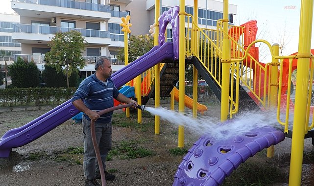 (İZMİR) - Menderes Belediyesi ekipleri salgın hastalıklara karşı önlem olarak parklarda dezenfekte işlemleri gerçekleştirdi.Menderes Belediyesi Park Bahçeler Müdürlüğü, özellikle son dönemde çocuklarda artan salgın hastalıklara önlem almak adına parkları dezenfekte etti. Parklarda yer alan tüm oyun ve spor grupları ile oturma alanları önce suyla yıkandı ardından da dezenfeksiyon işlemi uygulandı.“Daima özen göstereceğiz”Çalışmalar hakkında konuşan Menderes Belediye Başkanı İlkay Çiçek, “Çocuklarımızın sağlığı ve geleceğine verdiğimiz önemi her defasında ifade ediyoruz. Gelen kış ayları ile birlikte artan salgın hastalıkların yayılımını azaltmak adına parklarımızı dezenfekte ettik. Çocuklarımız için daima gereken özeni göstermeye devam edeceğiz” dedi.