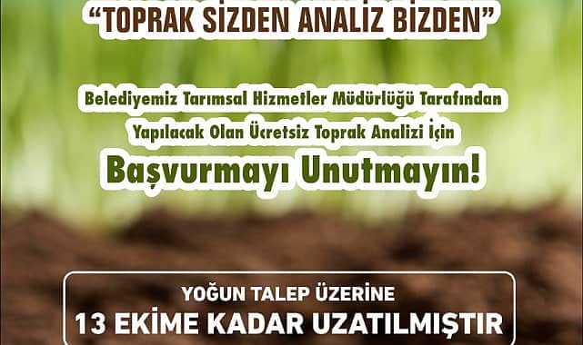 Menderes Belediyesi tarafından gerçekleştirilen ücretsiz toprak analizi projesine yoğun talep oluştuğu için son başvuru tarihi 13 Ekim tarihine kadar uzatıldı.Menderes Belediyesi tarafından İzmir Büyükşehir Belediyesi’nin de desteğiyle çiftçilere yönelik düzenlenen ücretsiz toprak analizi projesinde başvuru süresi yoğun talep nedeniyle ileri tarihe çekildi. Menderes Belediye Başkan Vekili Erkan Özkan, üreticilerin 13 Ekim tarihine kadar başvurularını belediyeye yapabileceğini açıkladı.DOĞRU YÖNLENDİRME İLE VERİMLİ TARIMProje kapsamında tarlasındaki toprak ile Menderes Belediyesi Tarımsal Hizmetler Müdürlüğü’ne başvuru yapan üreticilerin toprakları İzmir Büyükşehir Belediyesi Toprak ve Yaprak Analiz Laboratuvarı’na gönderiliyor. Laboratuvarda yapılan analizlerde toprakta bünye tayini, toprak reaksiyonu değeri (pH), kireç oranları ve organik madde miktarı ile birlikte azot, fosfor, potasyum, kalsiyum, magnezyum başta olmak üzere birçok elementin miktarları belirleniyor. Yapılan analizle toprağın yapısı ortaya çıkarılarak üreticinin doğru zamanda doğru gübreleme yapması sağlanabildiği gibi; aşırı ve yanlış gübre uygulamasının önüne geçilerek bu sayede toprak ve su kaynakları korunuyor ve üreticiler doğru yönlendiriliyor.‘’TOPRAĞIMIZA SAHİP ÇIKIYORUZ’’Ücretsiz toprak analizi projesine talebin yoğun olmasının önemli olduğunu kaydeden Menderes Belediye Başkan Vekili Erkan Özkan, şunları şunları ifade etti:"İlçemizin bereketli topraklarında üretim yapan tüm üreticilerimizin her zaman yanındayız. Projemize olan yoğun ilgi ne kadar önemli bir çalışma gerçekleştirdiğimizin de kanıtı. Yoğun talep nedeniyle projemizin son başvuru tarihini 13 Ekim Cuma gününe kadar uzatma kararı aldık. Bütün üreticilerimiz ücretsiz gerçekleştirdiğimiz toprak analizimizden yararlanabilir. Amacımız çiftçimizin, üreticimizin ekmeğini büyütmek, bereketli topraklarımızın daha verimli kullanımını sağlamak. Üreticimizin her zaman yanlarında ve destekçileriyiz. Bu kapsamda projede bize katkı sağlayan İzmir Büyükşehir Belediyesi’ne de Menderesli çiftçilerimiz adına teşekkür ediyorum."