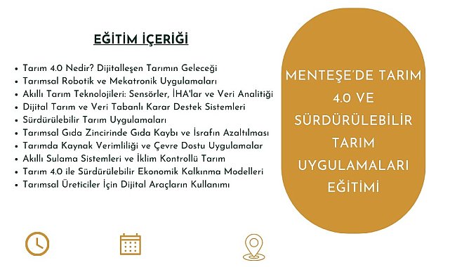 (MUĞLA) - Menteşe Belediyesi tarafından yürütülen “Menteşe’de Tarım 4.0 ve Sürdürülebilir Tarım Uygulamaları” eğitimi, Konakaltı İskender Alper Kültür Merkezi’nde 21 Nisan Pazartesi günü başlıyor.Menteşe Belediyesi tarafından yürütülen ve Muğla Büyükşehir Belediyesi ile Menteşe Ziraat Odası ortaklığında gerçekleştirilecek “Menteşe’de Tarım 4.0 ve Sürdürülebilir Tarım Uygulamaları” eğitimi, Güney Ege Kalkınma Ajansı (GEKA) Teknik Destek Programı kapsamında 21 Nisan 2025 Pazartesi günü başlıyor. Eğitimler, Konakaltı İskender Alper Kültür Merkezi’nde iki gün sürecek.Proje ile Menteşe’de tarımsal faaliyetlerin modern teknolojilerle desteklenmesi, üreticilerin verimliliğinin artırılması, çevresel sürdürülebilirliğin sağlanması ve iklim değişikliği gibi küresel zorluklara karşı tarımsal dayanıklılığın güçlendirilmesi hedefleniyor.Eğitimlerde ayrıca, Tarım 4.0 teknolojilerinin benimsenmesi yoluyla bölgenin tarımsal ürünlerinin ulusal ve uluslararası pazarlardaki rekabet gücünün artırılması, yerel ürünlerin izlenebilirliğinin sağlanması ve coğrafi işaretli ürünlerin değerinin yükseltilmesi amaçlanıyor.