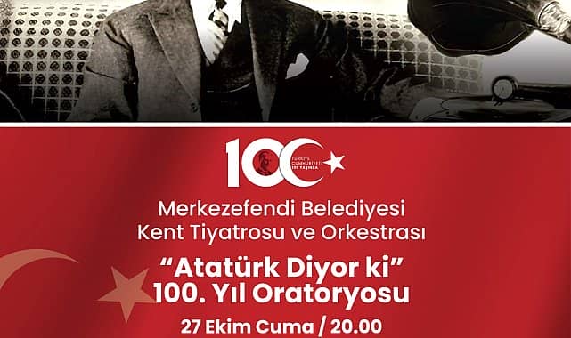 Merkezefendi Belediyesi Kent Tiyatrosu ile Merkezefendi Belediye Orkestrası, ‘Atatürk Diyor ki’ 100. Yıl Oratoryosu'nu sahneleyecek. Başkan Şeniz Doğan, “Tüm hemşehrilerimi Cumhuriyetimizin 100. yılını gururla kutlamaya davet ediyorum” dedi.