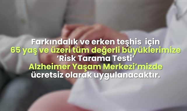 Merkezefendi Belediyesi, 65 yaş üstü vatandaşlar için ücretisz ‘Alzheimer Risk Tarama Testi’ gerçekleştirecek. Merkezefendi Belediye Başkanı Şeniz Doğan, “Alzheimer’da farkındalık ve erken teşhisin önemini bir kez daha hatırlatıyor, tüm büyüklerime sevgi ve saygılarımı sunuyorum” dedi.