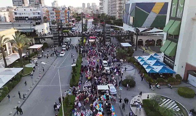 Kortejin en önünde yer alan çizgi film karakterlerinin maskotları etkinliğe renk katarken, Kır Çiçekleri tarafından da Türk bayrağı ve Atatürk posteri taşındı. Farklı ülkelerden festival için gelen öğrenciler de temsil ettikleri ülkelerin bayraklarıyla korteje eşlik etti. Mersin Büyükşehir Belediyesi Bandosu eşliğinde Forum Alışveriş Merkezi’nden başlayan kortej, Özgecan Aslan Meydanı’nda son buldu.