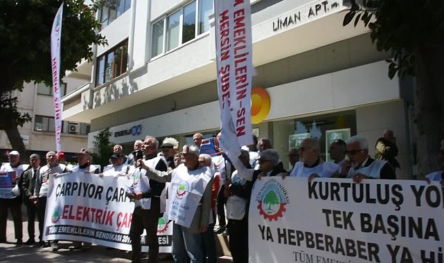 (MERSİN) - Mersin’de emekliler elektrik zammını protesto etti. Tüm Emekliler Sendikası Mersin Şube Başkanı Oktay Canpolat, "Bugün sağlık hakkı kadar enerji hakkı da insanlık hakkıdır. Evlerimizde elektriği açamıyoruz. Niye? Gelecek faturayı ödeyemeyiz diye..." dedi.
