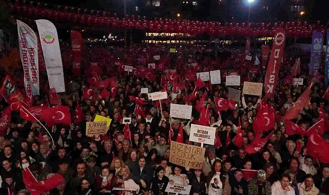 Kentin dört bir yanından gelen yurttaşların alanı doldurduğu dayanışma mitinginde coşkulu kalabalık ellerinde, “Karanlık ne kadar derinse şafak o kadar yakındır” , “Hak, hukuk, adalet”, “Gücünüz yetmez çünkü biz milletiz” , “Kurtuluş yok tek başına hep beraber ya hiçbirimiz”, “CHP başaracak milletin hakkı milletin olacak” , “19 Mart darbesine teslim olmayacağız” yazılı dövizler taşıdı.