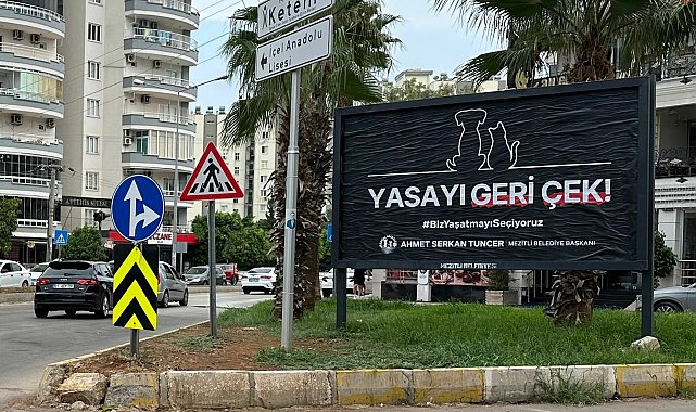 (MERSİN) - Mezitli Belediye Başkanı Ahmet Serkan Tuncer, sokak hayvanlarına ilişkin kanun teklifine karşı kamuoyu oluşturmak amacıyla ilçenin belirli noktalarına “Yasayı Geri Çek” yazılı billboardlar astırdı.