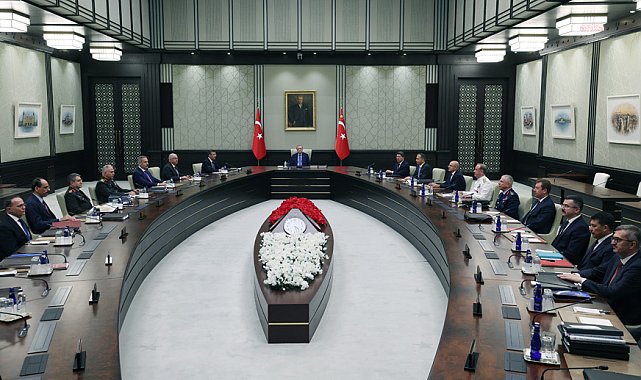 (ANKARA) - Cumhurbaşkanı Recep Tayyip Erdoğan'ın başkanlığında toplanan Milli Güvenlik Kurulu sonrasında yayımlanan bildiride, "Terörsüz Türkiye hedefi istikametinde kat edilen mesafe ve geleceğe ilişkin tasarruflar değerlendirilmiş; ülkemizin ayaklarına vurulmak istenen terör prangasının sökülüp atılmasıyla birlikte milletimizin kardeşliğinin daha da pekişeceği ve milli hedeflerimize daha hızlı ve istikrarlı adımlarla ilerleneceği ifade edilmiştir" denildi. Bildiride ayrıca, "Suriye’deki gelişmeler, bölgemizde yaşanan hadiselerin tesirleri de göz önüne alınarak etraflıca görüşülmüş; Suriye hükümetinin ülkenin birliğini, bütünlüğünü ve istikrarını sağlamaya matuf gayretlerine verilen desteğin sürdürüleceği teyit edilmiştir. Bu süreçte; yeniden bir şiddet sarmalına ve kaos ortamına sürüklenmek istenen Suriye’nin egemenliğini hedef alan saldırılar ve işgaller ile her türlü bölücü, yıkıcı ve ayrılıkçı faaliyetin engellenmesinin öncelik arz ettiğinin altı çizilmiştir" ifadelerine yer verildi.Milli Güvenlik Kurulu, bugün Cumhurbaşkanı Recep Tayyip Erdoğan başkanlığında Cumhurbaşkanlığı'nda toplandı. Toplantı sonrası yayımlanan bildiride şunlar kaydedildi:"Milli Güvenlik Kurulu, 30 Temmuz 2025 tarihinde Türkiye Cumhuriyeti Cumhurbaşkanı Sayın Recep Tayyip Erdoğan başkanlığında toplanmıştır. Toplantıda;-PKK/KCK-PYD/YPG, FETÖ ve DEAŞ terör örgütleri başta olmak üzere milli birlik ve beraberliğimiz ile bekamıza yönelik her türlü tehdit ve tehlikeye karşı yurt içinde ve yurt dışında azim, kararlılık ve başarıyla yürütülen faaliyetler ile son dönemde meydana gelen uluslararası gelişmeler hakkında kurula bilgi sunulmuştur.-Terörsüz Türkiye hedefi istikametinde kat edilen mesafe ve geleceğe ilişkin tasarruflar değerlendirilmiş; ülkemizin ayaklarına vurulmak istenen terör prangasının sökülüp atılmasıyla birlikte milletimizin kardeşliğinin daha da pekişeceği ve milli hedeflerimize daha hızlı ve istikrarlı adımlarla ilerleneceği ifade edilmiştir.-FETÖ ile mücadelede gelinen aşama ve müteakip süreçte izlenecek hareket tarzları ele alınmış; ihanet şebekesinin tamamen çökertilmesine ve son kalıntılarının da bertaraf edilmesine yönelik sarsılmaz irade vurgulanmıştır.-Suriye’deki gelişmeler, bölgemizde yaşanan hadiselerin tesirleri de göz önüne alınarak etraflıca görüşülmüş; Suriye hükümetinin ülkenin birliğini, bütünlüğünü ve istikrarını sağlamaya matuf gayretlerine verilen desteğin sürdürüleceği teyit edilmiştir. Bu süreçte; yeniden bir şiddet sarmalına ve kaos ortamına sürüklenmek istenen Suriye’nin egemenliğini hedef alan saldırılar ve işgaller ile her türlü bölücü, yıkıcı ve ayrılıkçı faaliyetin engellenmesinin öncelik arz ettiğinin altı çizilmiştir.-İsrail’in İran’a saldırısıyla başlayan sürecin siyasi ve askeri neticeleri değerlendirilmiş; halihazırda dahi ciddi kırılganlıklarla malul olan Orta Doğu coğrafyasında yeni gerilimlere ve çatışmalara fırsat verilmemesi gerektiğine işaret edilmiştir. Uluslararası hukuku çiğneyerek Filistin, Lübnan, Suriye ve Yemen’in ardından İran’ı da hedef alan ve Gazze’deki soykırım ve insanlık suçlarını sürdürerek bölgeyi felakete sürüklemeyi amaçlayan İsrail yönetiminin bir an önce durdurulması için uluslararası topluma sorumluluk alarak harekete geçme çağrısında bulunulmuştur.-Rusya-Ukrayna Savaşı’ndaki tırmanma emarelerinden duyulan endişe dile getirilmiş; Türkiye’nin kalıcı barışın tesisi için mesuliyet üstlenmeye ve her türlü katkıyı sunmaya hazır olduğu bir kez daha ifade edilmiştir."