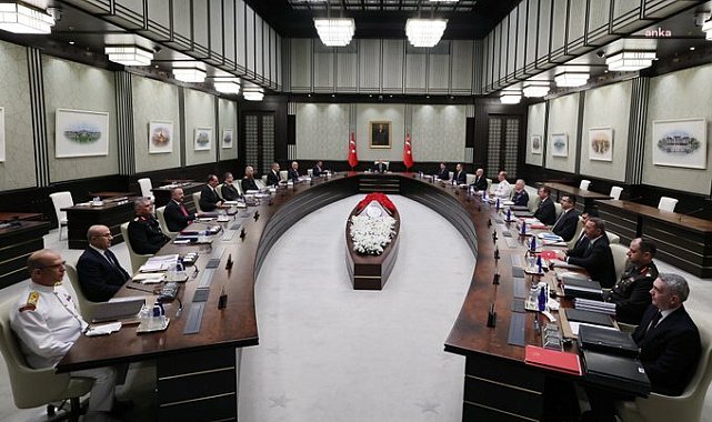 (ANKARA)-Milli Güvenlik Kurulu (MGK), Cumhurbaşkanı Recep Tayyip Erdoğan başkanlığında toplandı. Toplantının ardından yayınlanan bildiride;"Terörsüz Türkiye hedefiyle atılan adımlar ile son gelişmeler değerlendirilmiş; tasfiye sürecinin her aşamasının hassasiyetle takip edilmesine, terörün ülkemizin gündeminden kalıcı olarak çıkarılmasına, milletimizin birlik ve beraberliğinin tahkim edilerek daha güçlü ve müreffeh bir Türkiye’ye ulaşılmasına yönelik kararlılık vurgulanmıştır." denildi. MGK, Cumhurbaşkanı Recep Tayyip Erdoğan'ın başkanlığında Cumhurbaşkanlığı Külliyesi'nde toplandı. Terör örgütü PKK’nın fesih kararından sonra gerçekleştirilen ilk toplantının ardından bildiri yayımlandı. Cumhurbaşkanlığı İletişim Başkanlığı'nın sosyal medya paylaşımında yer alan bildiri şöyle:"Terörsüz Türkiye hedefiyle atılan adımlar ile son gelişmeler...""PKK/KCK-PYD/YPG, FETÖ ve DEAŞ terör örgütleri başta olmak üzere millî birlik ve beraberliğimiz ile bekamıza yönelik her türlü tehdit ve tehlikeye karşı yurt içinde ve yurt dışında azim, kararlılık ve başarıyla yürütülen operasyonlar ile son dönemde meydana gelen uluslararası gelişmeler hakkında Kurula bilgi sunulmuştur.Terörsüz Türkiye hedefiyle atılan adımlar ile son gelişmeler değerlendirilmiş; tasfiye sürecinin her aşamasının hassasiyetle takip edilmesine, terörün ülkemizin gündeminden kalıcı olarak çıkarılmasına, milletimizin birlik ve beraberliğinin tahkim edilerek daha güçlü ve müreffeh bir Türkiye’ye ulaşılmasına yönelik kararlılık vurgulanmıştır.Müşterek coğrafyamızın tüm terör örgütlerinden arındırılması neticesinde, başta komşularımız Irak, Suriye ve İran olmak üzere bölge ülkeleri için de huzurlu bir dönemin başlayacağına işaret edilmiş; güvenlik alanındaki iş birliğinin daha da ilerletilmesinin, bölgemizin ortak geleceğinin inşasına en önemli katkıyı yapacağı belirtilmiştir."Suriye’deki gelişmeler, Gazze ve İsrail’in, Filistin’in yanı sıra Suriye, Lübnan ve Yemen’e yönelik sistemli saldırılar..."Suriye’deki gelişmeler ve son durum ele alınmış; Suriye yönetiminin tüm ülke sathında istikrarı sağlama gayretlerine verilen güçlü desteğin sürdürüleceği kaydedilmiş, Suriye halkını mağdur eden uluslararası yaptırımların kaldırılmasına yönelik eğilimden memnuniyet duyulduğu ifade edilmiştir. Bu kritik süreçte, Suriye’nin egemenliğine, toprak bütünlüğüne, üniter yapısına ve siyasi birliğine zarar verebilecek girişimlerin bertaraf edilmesinin önemine dikkat çekilmiş; Suriye’yi istikrarsızlaştırmaya matuf faaliyetlere karşı ilkeli bir tutum benimsenmesi çağrısında bulunulmuştur. Gazze’de soykırım ve işgali sürdüren İsrail’in, Filistin’in yanı sıra Suriye, Lübnan ve Yemen’e yönelik sistemli saldırılarının ve yayılmacı emellerinin Orta Doğu’daki barış çabalarını sekteye uğrattığı belirtilmiş; mesuliyet mevkindeki uluslararası aktörlerin, İsrail yönetiminin politikalarından kaynaklanan risk ve tehditlerin bertaraf edilmesi hususundaki sorumluluklarını yerine getirmesi gerektiğinin altı çizilmiştir.Kuzey ve Doğu Afrika,Rusya-Ukrayna Savaşı’nın sona erdirilmesi ve Azerbaycan ile Ermenistan’ın barış anlaşması taslağı..."Kuzey ve Doğu Afrika’da cereyan eden hadiseler görüşülmüş; Türkiye’nin, Afrika’daki kardeş ülkelerin güvenlik ve istikrarı tesis etme çabalarına verdiği desteği artırarak devam ettireceği belirtilmiştir.Rusya-Ukrayna Savaşı’nın sona erdirilmesi için hassas bir sürece girildiği kaydedilmiş; kalıcı ve adil bir barışa ulaşılması için inisiyatif üstlenen ülkemizin, barış diplomasisi ve ara buluculuk faaliyetleriyle küresel barış ve istikrara katkı sunmayı sürdüreceği ifade edilmiştir.Azerbaycan ile Ermenistan’ın barış anlaşması taslağı üzerinde mutabakata varmalarından memnuniyet duyulduğu belirtilmiş; bölgemizdeki tüm aktörlerin menfaatine neticeler ortaya çıkaracak nihai barışın tesisi için gerekli koşulların sağlanması yönündeki beklentimiz bir kez daha teyit edilmiştir. Kamuoyunun bilgisine saygıyla sunulur."