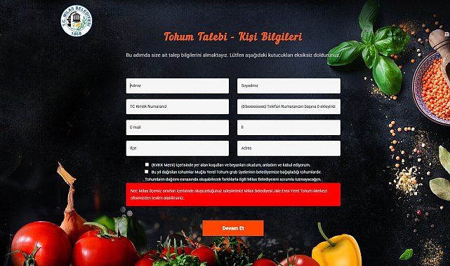 (MUĞLA)- Milas Belediyesi, sürdürülebilir kırsal kalkınma anlayışıyla hayata geçirdiği proje kapsamında Milas ve farklı şehirlerden başvuru talebinde bulunan vatandaşlara, 37 cins ve 230 çeşit tohum dağıtımı gerçekleştirecek.Milas Belediyesi, sürdürülebilir kırsal kalkınma anlayışıyla çiftçilere destek olmaya devam ediyor. Tarımsal Hizmetler Müdürlüğü bünyesinde yerel tohum üretiminin yaygınlaşması ve vatandaşın yerel tohumlara ulaşması amacıyla çalışmalar gerçekleştiren Milas Belediyesi, hayata geçirdiği proje kapsamında Milas ve farklı şehirlerden başvuru talebinde bulunan vatandaşlara 37 cins ve 230 çeşit tohum dağıtımı gerçekleştirecek.Başvurular başladı20-23 Ocak günleri arasında alınacak başvurularda talep formunu dolduran vatandaşlar hizmetten faydalanabilecek. Aynı kişi bir kez tohum talebinde bulunabilirken en fazla 15 adet tohum tercihi yapabilecek. Taleplerini Milas ilçe sınırları içerisinde oluşturan vatandaşlar tohumlarını Milas Belediyesi Jale Eren Yerel Tohum Merkezi Ofisi’nden teslim alacak.
