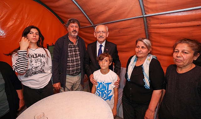 Millet İttifakı Cumhurbaşkanı Adayı ve CHP Genel Başkanı Kemal Kılıçdaroğlu, Hatay’da depremzedelerin yaşadığı çadır kent alanını ziyaretinde, “Her zaman yüreğim sizlerle beraber oldu. Sizlerin acıları, depremi yaşayan bütün vatandaşların acıları aynı zamanda benim de acımdır. Deprem olduktan hemen sonra bütün bölgeleri gezdim. Bütün illere gittim. Çadırkentleri ziyaret ettim. Vatandaşlarım arasında hiçbir ayrımcılık yapmadım. Herkesin acısını paylaşmak, herkesin yüreğine dokunmak benim görevlerimden birisiydi. Bunu yapmak istedim. Bundan sonra da yapacağım” dedi.Millet İttifakı Cumhurbaşkanı Adayı ve CHP Genel Başkanı Kemal Kılıçdaroğlu, bugün Hatay programı kapsamında depremzedelerin yaşadığı çadır kent alanını ziyaret etti. Çadır kentte yaşayan depremzedelere konuşan Kılıçdaroğlu, şunları söyledi:“Her zaman yüreğim sizlerle beraber oldu. Sizlerin acıları, depremi yaşayan bütün vatandaşların acıları aynı zamanda benim de acımdır. Deprem olduktan hemen sonra bütün bölgeleri gezdim. Bütün illere gittim. Çadırkentleri ziyaret ettim. Vatandaşlarım arasında hiçbir ayrımcılık yapmadım. Herkesin acısını paylaşmak, herkesin yüreğine dokunmak benim görevlerimden birisiydi. Bunu yapmak istedim. Bundan sonra da yapacağım.“DEPREMDE YIKILAN EVLERİNİZ, İŞYERLERİNİZİ KESİNLİKLE YENİDEN YAPACAĞIZ VE KESİNLİKLE BİR TEK KURUŞ ALMADAN HEPİNİZE BU EVLERİN TAPUSUNU VERECEĞİZ”Hiç endişe etmeyin, inşallah göreceksiniz. Güzel bir Türkiye’yi hep birlikte inşa edeceğiz. Huzur içinde yaşayacağız. Bereketli topraklarda yaşayacağız. Acılarınızı biliyorum, bu acı sadece benim değil bütün Türkiye’nin ortak acısı ve bu acıları paylaştık. İnşallah sevinçli, mutlu günleriniz de olacak. Evlatlarınızla güzel evlerde oturacaksınız. Bunun da sözünü veriyorum. Defalarca söyledim. Depremde yıkılan evleriniz, işyerlerinizi kesinlikle yeniden yapacağız ve kesinlikle bir tek kuruş almadan hepinize bu evlerin tapusunu vereceğiz. Anahtarını vereceğiz. Evlerinizde huzur içinde yaşayacaksınız. Bundan en ufak bir endişe duymayın.”