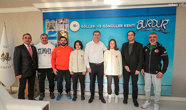 (BURDRUR)- Burdur Belediye Spor Kulübü’nün sporcuları, Trabzon ve Antalya’da düzenlenecek uluslararası judo organizasyonları öncesinde Belediye Başkanı Ali Orkun Ercengiz’i ziyaret etti.Burdur Belediye Başkanı Ali Orkun Ercengiz, Belediye Spor Kulübü’nün sporcularını ağırladı. 52 kilogram Türkiye Şampiyonu Ayşenur Özdil, 15 Şubat - 05 Mart 2025 tarihleri arasında Trabzon’da gerçekleştirilecek Ümit Kadınlar Milli Takım Hazırlık Kampı’na katılacak. Özdil, ardından 8-9 Mart 2025 tarihlerinde Antalya’da düzenlenecek Cadet European Cup 2025’te, 57 kilogram sporcu Ceylin Başarır ile birlikte mücadele edecek.Başkan Ercengiz, genç sporcuları tebrik ederek, başarılar diledi. Sporcular ise desteklerinden dolayı Başkan Ercengiz’e teşekkür etti.