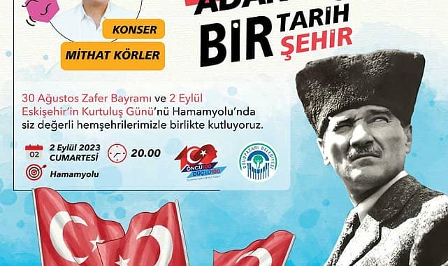 Odunpazarı Belediyesi, 30 Ağustos Zafer Bayramı ve 2 Eylül Eskişehir’in Kurtuluşu kutlamaları kapsamında Hamamyolu Yolu Caddesi’nde Mithat Körler konseri düzenleyecek.Odunpazarı Belediyesi, 30 Ağustos Zafer Bayramı’nın ve Eskişehir’in Kurtuluşunun 101’inci yılı nedeniyle Hamamyolu’nda muhteşem bir halk konseri düzenleyecek. “Kurtuluşa Adanmış Bir Tarih Kurtuluşa Adanmış Bir Şehir” sloganı ile gerçekleşecek konserde, Eskişehir’in sevilen sesi Mithat Körler sahne alacak. 2 Eylül 2023 Cumartesi günü gerçekleşecek konser saat 20.00’de başlayacak.Mithat Körler’in, bu kez şarkılarını büyük zafer için söyleyeceğini belirten Odunpazarı Belediye Başkanı Kazım Kurt, “30 Ağustos Zafer Bayramı ve 2 Eylül Eskişehir’in Kurtuluş Günü'nü, hep birlikte coşkuyla şarkılar ve marşlar söyleyerek kutlayacağız. Ben tüm hemşehrilerimi, 30 Ağustos Zafer Bayramımızın ve Eskişehir’imizin Kurtuluşunun 101’inci yılını kutlayacağımız bu konsere davet ediyorum. Gelin, sizler de bu coşkumuza ortak olun” dedi.