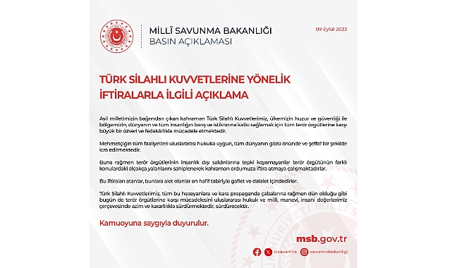 Milli Savunma Bakanlığı (MSB), CHP Diyarbakır Milletvekili Sezgin Tanrıkulu'nun bir televizyon kanalındaki ifadelerine ilişkin; “Terör örgütlerin insanlık dışı saldırılarına tepki koymayanlar terör örgütünün farklı konulardaki alçakça yalanlarını sahiplenerek kahraman ordumuza iftira atmaya çalışmaktadırlar. Bu iftiraları atanlar, bunlara alet olanlar en hafif tabiriyle gaflet ve dalalet içindedirler” açıklamasını yaptı.MSB, CHP Diyarbakır Milletvekili Tanrıkulu'nun bir televizyon kanalında bazı ifadeler kullanması üzerine Ankara Cumhuriyet Başsavcılığı’nın soruşturma başlattığı gelişmeyle ilgili bu akşam açıklama yaptı. MSB açıklaması şöyle:“Asil milletimizin bağrında çıkan kahraman Türk Silahlı Kuvvetlerimiz, ülkemizin huzur ve güvenliği ile bölgemizin, dünyanın ve tüm insanlığın barış ve istikrarına katkı sağlamak için tüm terör örgütlerine karşı büyük bir özveri ve fedakarlıkla mücadele etmektedir.Mehmetçiğin tüm faaliyetleri uluslararası hukuka uygun, tüm dünyanın gözü önünde ve şeffaf bir şekilde icra edilmektedir. Buna rağmen terör örgütlerin insanlık dışı saldırılarına tepki koymayanlar terör örgütünün farklı konulardaki alçakça yalanlarını sahiplenerek kahraman ordumuza iftira atmaya çalışmaktadırlar. Bu iftiraları atanlar, bunlara alet olanlar en hafif tabiriyle gaflet ve dalalet içindedirler.Türk Silahlı Kuvvetlerimiz, tüm bu hezeyan ve kara propaganda çabalarına rağmen dün olduğu gibi bugün de terör örgütlerine karşı mücadelesini uluslararası hukuk ve milli, manevi, insani değerlerimiz çerçevesinde azim ve kararlılıkla sürdürmektedir, sürdürecektir.”