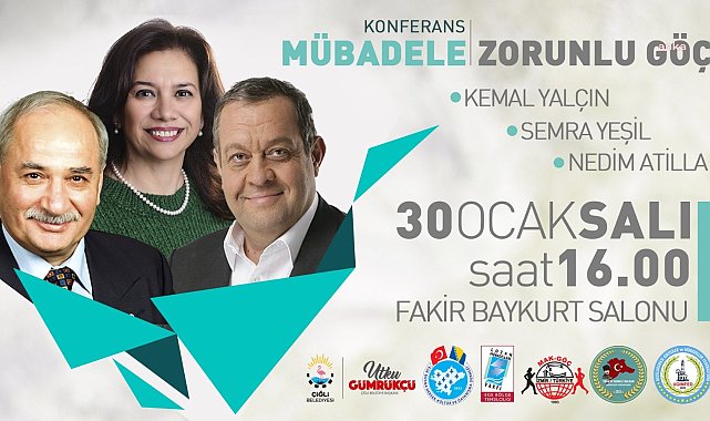 Ege Bosna-Hersek Kültür ve Dayanışma Derneği, Trakya Rumeli Balkan Dernekleri Federasyonu, Uluslararası Giritliler ve Mübadiller Federasyonu, Mak-Göç, Lozan Mübadilleri Vakfı Ege Temsilciliğinin işbirliğinde gerçekleştirilecek konferans 30 Ocak Salı günü Çiğli Belediyesi Fakir Baykurt Salonu’nda düzenlenecek. Konferansa göç ve mübadeleyi anlatan kitaplarıyla ödüller alan Avrupa Türkiyeli Yazarlar Grubu Başkanı Kemal Yalçın, İzmir tarihinde mübadeleyi ayrıntılarıyla işleyen gazeteci yazar Nedim Atilla ve Makedonya’dan göçü anlatan yazar Semra Yeşil konuşmacı olarak katılacak.