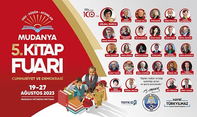 ‘Mudanya 5. Kitap Fuarı’, Cumhuriyet’in önsözünün yazıldığı Mudanya'da 100. yıla özel “Cumhuriyet ve Demokrasi” temasıyla başlıyor. 19-27 Ağustos 2023 tarihleri arasında Mütareke Meydanı ve İsmet İnönü Parkı’nda düzenlenecek fuar kapsamında 68 yayınevi ile 46 akademisyen, gazeteci-yazar ve siyasetçi Bursalı kitapseverlerle buluşacak.Mudanya Belediyesi’nin Yayıncılar Kooperatifi (YAYKOOP) iş birliğiyle düzenlediği Mudanya Kitap Fuarı’nın beşincisi 19 Ağustos’ta “Cumhuriyet ve Demokrasi” temasıyla başlıyor.Fuarın ilk oturumunda onur konuğu, Uğur Mumcu Araştırmacı Gazetecilik Vakfı (UM:AG) kurucusu, siyasetçi Güldal Mumcu olacak. Mumcu, CHP Yerel Yönetimlerden Sorumlu Genel Başkan Yardımcısı Ahmet Akın, gazeteci Barış Pehlivan ile birlikte gazeteci Yüksel Baysal’ın moderatörlüğünde “100. Yılında Cumhuriyet'i Sonsuza Taşımak” söyleşisinde Bursalılarla buluşacak.Cumhuriyetin bir ülkenin yönetim şekli olarak halkın egemenliğine dayalı, demokratik ve laik bir yapıyı ifade ettiğine vurgu yapan Mudanya Belediye Başkanı Hayri Türkyılmaz, fuara ilişkin şunları söyledi:“Basın özgürlüğü ise demokratik bir toplumun olmazsa olmaz unsurlarından biridir ve bireylerin haber alma hakkını ve ifade özgürlüğünü garanti eder. Medyanın toplum üzerindeki denetim ve etkisi nedeniyle ‘dördüncü kuvvet’ olarak anılan basın, üç temel devlet erki yürütme, yasama ve yargıyı tamamlayan bir denge unsuru. Ülkemizin yetiştirdiği en önemli kalemlerden Uğur Mumcu’nun anısını yaşatan Uğur Mumcu Araştırmacı Gazetecilik Vakfı adına bu yıl onur konuğumuz Güldal Mumcu olacak. Çünkü Mumcu gazeteciliğine sahip çıkmak, aynı zamanda demokrasiye sahip çıkmaktır. Cumhuriyet’in 100. yılında halkı aydınlatmak, Cumhuriyet’i ayakta tutmak gibi bir misyonu olan gazetecileri de onurlandıracağımız fuarımızda yine gazeteciliğin bedelini ödeyen Barış Pehlivan’ı da konuk edeceğiz.”YAYKOOP Başkanı Elif Akkaya ise şöyle konuştu:“Cumhuriyetimizin 100. yılında gelenekselleşmiş Mudanya Kitap Fuarı'nın beşincisini yapmak büyük mutluluk. Edebiyat, insanlığın ortak hafızasıdır. Kitaplar sayesinde geçmişin izlerini sürer, farklı kültürleri anlar, yeni düşüncelerle tanışırız. Bu fuar, farklı yazarların ve yayınevlerinin eserleriyle zenginleşen geniş bir yelpazede kitapları bir araya getirerek, bu ortak hafızayı beslemeye ve büyütmeye hizmet ediyor. Yerel yönetimlerin kitap günlerini sürdürme kararlılığı ve devamlılığı adına gösterdikleri çabayı kutluyorum. Mudanya Belediyesi iş birliğinde nice yıllar kültür, sanat, edebiyat demeye devam edeceğiz.”Fuarda Ahmet Telli ve sanatçı Mehtap Meral, Türkiye Komünist Partisi Genel Sekreter Kemal Okuyan, Tunceli Belediye Başkanı Fatih Maçoğlu, SHP eski Genel Başkanı, önceki dönem Başbakan Yardımcısı, Dışişleri Bakanı ve önceki dönem Ankara Büyükşehir Belediye Başkanı Murat Karayalçın, Emekli Büyükelçi Ünal Çeviköz, Gazeteci Murat Yetkin, Yazar Ayşe Kulin, Tarih Vakfı Başkanı Prof. Dr. Mehmet Öznur Alkan, İstanbul Gedik Üniversitesi İktisadi, İdari ve Sosyal Bilimler Fakültesi, Siyaset Bilimi ve Uluslararası İlişkiler Bölüm Başkanı Prof. Dr. Süha Atatüre, CHP İstanbul İl Başkanı Canan Kaftancıoğlu, Gazeteci, yazar, insan hakları aktivisti Hacer Foggo ve CHP Genel Başkan Yardımcısı Yunus Emre, Gazeteci İsmail Arı, CHP Ankara Milletvekili Okan Konuralp ve TBMM Başkanvekili Gülizar Biçer Karaca, Gazeteci Yazarlar Sedef Kabaş, Özlem Gürses, Tuncay Mollaveyisoğlu, toplum bilimci akademisyen Emre Kongar, gazeteci-yazar Zülal Kalkandelen yer alacak. Mudanya 5. Kitap Fuarı kapsamında söyleşilerin yanı sıra atölye etkinlikleri de düzenlenecek. Etkinlik kapsamında 26 Ağustos akşamı saat 21.00’de Mayaperest sahne alacak. Mudanya 5. Kitap Fuarı “Myrleia'dan Mudanya’ya” oturumuyla 24 Ağustos Perşembe günü saat 19.00’da Bursa Uludağ Üniversitesi Fen-Edebiyat Fakültesi Arkeoloji Bölüm Başkanı Prof. Dr. Mustafa Şahin, Bursa Uludağ Üniversitesi Fen-Edebiyat Fakültesi Arkeoloji Bölümü Öğretim Üyesi Prof. Dr. Derya Şahin ve Ankara Hacı Bayram Veli Üniversitesi Kültür Varlıklarını Koruma ve Onarım Bölümü Öğretim Üyesi Dr. Murat Cura’yı ağırlayacak.