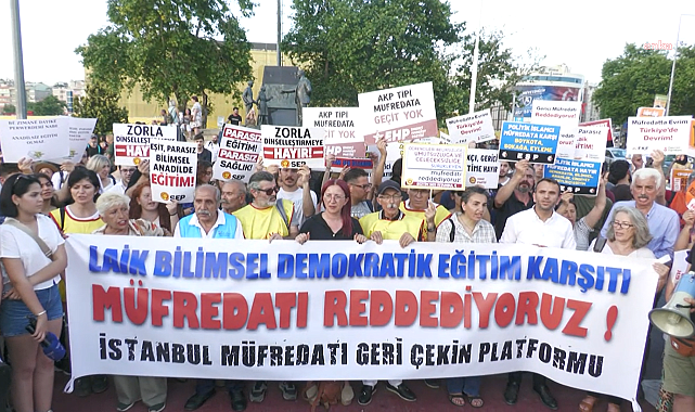 (İSTANBUL) Müfredatı Geri Çekin Platformu Kadıköy'de açıklama yaptı. “Türkiye Yüzyılı Maarif Modeli”ne tepkilerini dile getiren eğitimciler, "Tek adam rejiminin yaratmaya çalıştığı dini esaslara dayalı toplum modelini temel alan, laiklik ve bilim karşıtı yeni müfredatı reddediyoruz" dedi.Eğitim sendikaları adına hazırlanmış ortak açıklamayı Eğitim-Sen 2 no'lu Şube Başkanı Bengi Şahin okudu. Şahin, son dönemdeki dini ağırlıklı uygulamaları anımsatarak, "MEB’in ÇEDES ve benzeri projeler üzerinden eğitim sistemi, içine faaliyet alanı açtığı Diyanet İşleri Başkanlığı’nın yanı sıra iktidarla iç içe olan dini vakıf ve cemaatler tarafından okullar, yurtlar, kurslar vb. kurumlar tıpkı bir örümcek ağı gibi çepeçevre kuşatılmış durumdadır. Yeni müfredat değişiklikleri eğitim kurumları başta olmak üzere, eğitim sisteminde yaşanan dinselleşme kuşatmasının en son ve en tehlikeli aşamasını oluşturmaktadır" ifadelerini kullandı."Siyasi iktidarın ideolojisi öğrencilere aktarılıyor"Milli Eğitim Bakanlığı'nın (MEB) müfredatı hazırlarken yangından mal kaçırır gibi davrandığını belirten Şahin şunları söyledi:"MEB’in müfredat değişikliklerinde laik ve bilimsel eğitim geri plana itilirken, bütün ders kitaplarında ‘milli ve manevi değerler’ merkeze alınmıştır. MEB’in öncelikli hedefi eğitimin bilimsel esaslara dayanmasından çok, iktidarın siyasal ideolojisinin eğitim müfredatı ve ders kitapları üzerinden açık ve gizli olarak öğrencilere aktarılmasıdır. Müfredat taslağı başlığının “Türkiye Yüzyılı Maarif Modeli” olarak belirlenmiş olması bu nedenle tesadüf değildir.Sorgulamayan, eleştirmeyen, itiraz etmeyen nesiller yetiştirilmek isteniyorMEB’in müfredat değişiklikleri ile asıl hedefi, düşünmeyen, sorgulamayan, eleştirmeyen, itiraz etmeyen itaatkâr nesiller yetiştirmektir. Bunun için öğretim programlarında bilimsel eğitim ile ilgili olan pek çok nokta özenle ‘sadeleştirme’ ya da ‘ayıklamaya’ tabi tutulmuş, tek adam rejiminin siyasal ve ideolojik hedefleri eğitim müfredatına yerleştirilmiştir. Eğitim müfredatında yapıldığı söylenen ‘sadeleştirme’ ile doğrudan bilim, tarih, felsefe ve sanat derslerinin hedef alınmıştır. Bazı derslerde ünite ve kazanım sayıları azaltılmış, 12 Eylül darbecilerinin ‘tek ırk, tek din, tek mezhep’ anlayışı üzerinden ‘Türk-İslam sentezi’ yaklaşımını merkeze alan değişiklikler yapılmıştır."Çocuklarımıza verebileceği hiçbir şey yoktur"Eğitim sistemi açısından öğrencilere verilecek bilginin belirlenmesi, seçilmesi, müfredat ve ders kitapları üzerinden öğrencilere aktarılması süreci pedagojik olduğu kadar, siyasal bir nitelik de taşımaktadır. Bu durumun somut bir sonucu olarak yeni eğitim müfredatı, farklı yaş gruplarındaki çocuk ve gençlerin gerçek ihtiyaçlarından çok, iktidarın siyasal çizgisine paralel şekilde hazırlanmıştır. Bu durum, yapılan değişikliklerin başta eğitim alanı olmak üzere, toplumun farklı kesimleri tarafından haklı olarak tepkiyle karşılanmasına neden olmaktadır. Bireycilikle, milliyetçilikle, dini-milli değerler ve rekabet ile yoğrulmuş, bilimsel, sanatsal, estetik yönden zayıf, büyük ölçüde dini kural ve referanslara dayanan bir dilin kullanıldığı bir eğitim müfredatının çocuklarımıza/öğrencilerimize verebileceği hiçbir şey yoktur"Açıklama, "Eğitim müfredatı olmaktan çok uzak olan ve tek adam rejiminin yaratmaya çalıştığı dini esaslara dayalı toplum modelini temel alan, laiklik ve bilim karşıtı yeni müfredatı reddediyoruz. Eğitim ve bilim emekçileri başta olmak üzere, öğrencilerimiz, velilerimiz ve tüm kamuoyu ile birlikte bilime ve laik eğitime açıkça meydan okumak anlamına gelen müfredat değişikliklerine karşı birlikte mücadelemizi sürdüreceğiz" sözleriyle sona erdi.