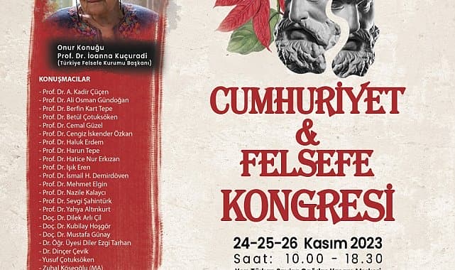 Muğla Büyükşehir Belediyesi, Cumhuriyet'in 100. Yılı ve Dünya Felsefe Günü nedeniyle “Cumhuriyet ve Felsefe” konulu kongre düzenliyor.Türkiye Cumhuriyeti’nin kuruluşunun 100.yılını farklı etkinliklerle kutlamaya devam eden Muğla Büyükşehir Belediyesi 24-26 Kasım 2023 tarihlerinde, Türkiye Felsefe Kurumu'nun iş birliğiyle, “Cumhuriyet ve Felsefe” konulu kongre düzenliyor. Türkiye genelinden birçok önemli ismin katılacağı kongrenin onur konuğu ise Türkiye Felsefe Kurumu ve Maltepe Üniversitesi İnsan Hakları Araştırma ve Uygulama Merkezi Kurucu Başkanı Prof. Dr. İoanna Kuçuradi olacak.Cumhuriyet'in 100. Yılı ve Dünya Felsefe Günü nedeniyle 24-26 Kasım 2023 tarihlerinde Muğla’da Büyükşehir Belediyesi’nin düzenleyeceği “Cumhuriyet ve Felsefe” konulu kongrede Cumhuriyet'ten bugüne felsefe alanında önemli çalışmalarda bulunan düşünürler ele alınacak.PROF. DR. İOANNA KUÇURADİ KİMDİR?Muğla Büyükşehir Belediyesi ve Türkiye Felsefe Kurumu’nun iş birliğiyle 24-26 Kasım tarihleri arasında düzenlenecek Cumhuriyet ve Felsefe Kongresi’nin onur konuğu Prof. Dr. İoanna Kuçuradi 1936 yılında İstanbul’da doğdu. 1954'te Zapyon Kız Lisesi’ni, 1959'da İstanbul Üniversitesi Felsefe Bölümü'nü bitirdi. 1965'te doktora derecesini aldı. 1965-1968 yılları arasında Erzurum Atatürk Üniversitesi’nde görev yaptı. 1970'te Doçent, 1978'de Profesör oldu. 1969'da Hacettepe Üniversitesi Felsefe Bölümünü kurdu ve 2003 yılında emekli oluncaya dek bölümün başkanlığını yaptı. 1997'den beri aynı üniversitenin İnsan Hakları ve Felsefesi Uygulama ve Araştırma Merkezinin Müdürü ve bu Merkezin bünyesinde kurulan UNESCO Kürsüsü'nün sahibidir.
