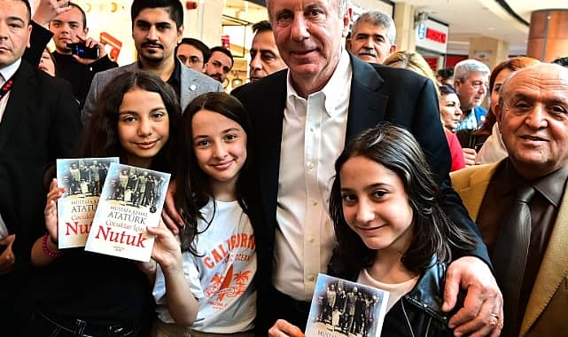 Memleket Partisi Genel Başkanı ve Cumhurbaşkanı adayı Muharrem İnce, 23 Nisan Ulusal Egemenlik ve Çocuk Bayramı’nda Ankara’da bir alışveriş merkezinde çocuklarla bir araya geldi. İnce, çocuklara Atatürk’ün Nutuk adlı eserini hediye etti.Memleket Partisi Genel Başkanı ve Cumhurbaşkanı adayı Muharrem İnce, 23 Nisan Ulusal Egemenlik ve Çocuk Bayramı’nda Ankara’da bir alışveriş merkezinde, çocuklarla buluşmasına ilişkin fotoğrafları, Twitter hesabında paylaştı. Çocuklara Atatürk’ün Nutuk adlı eserini hediye eden İnce, sosyal medya hesabında şu mesajı paylaştı:“Bugün Ankara'da geleceğimizin teminatı olan çocuklarımızla buluştuk. Çocuklar, Nutuk Muharrem Öğretmeninizden, okuması sizden. Hepinizi gözlerinizden öpüyorum, 23 Nisan Ulusal Egemenlik ve Çocuk Bayramınızı kutluyorum”