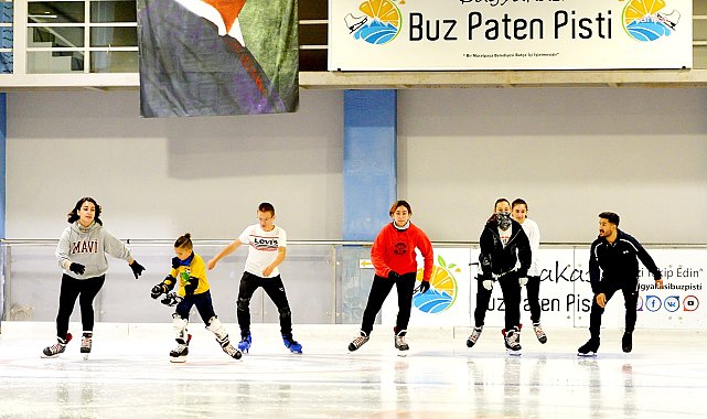 (ANTALYA)- Antalya’da Muratpaşa Belediyesi’nin doğal buz pateni pisti büyük ilgi görüyor. Hissedilen sıcaklığın 50 dereceyi aştığı yaz günlerinde, 450 metrekare genişliğindeki Dağyakası Buz Pateni Pisti, kavurucu sıcakta serin bir kaçış noktası sunuyor.Muratpaşa Belediyesi'ne bağlı buz pateni pisti, vatandaşlardan yoğun ilgi görüyor. Hafta içi her gün 13.00-21.00 saatleri arasında açık olan pistte, uzman eğitmenler tarafından çocuklar için buza başlangıç ve yetişkinler için buz pateni dersleri veriliyor. Bu sayede minikler, eğitmenler eşliğinde buz pateni yapmanın keyfini çıkarırken hem spor yapma hem de eğlenme imkanı buluyor.Belediye’nin Dağyakası Buz Pisti, Çaybaşı Mahallesi'nde bulunan 'açık hava çocuk oyun dünyası' Teneffüs Park içinde yer alıyor. Tesiste buz hokeyi ve artistik buz pateni eğitimleri de veriliyor ve aynı anda 60 kişi buz pistini kullanabiliyor.