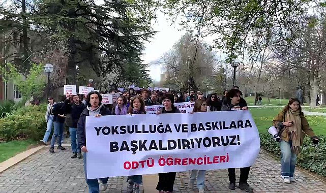 Haber: Esra Tokat / Kamera: Berkin Gülsoy(ANKARA) - Orta Doğu Teknik Üniversitesi (ODTÜ) öğrencileri bugün kampüste “Yoksulluğa ve baskılara başkaldırıyoruz” diyerek yürüyüş düzenledi. Yürüyüşün ardından düzenlenen basın açıklamasında tutuklanan öğrencilerin biran önce serbest bırakılmasını istenirken “Şimdi de tüm işçileri, emekçileri, akademisyenleri üretimden gelen güçlerini kullanmaya, halkın gücünü bir avuç para babasına göstermek için genel greve çağırıyoruz” denildi.Ekrem İmamoğlu’nun gözaltına alınmasıyla başlayan ve tutuklanmasıyla devam eden eylemler sürüyor. Bayram tatilinin ardından üniversitelere dönen öğrenciler, bu eylemler sırasında tutuklanan sıra arkadaşlarının serbest bırakılması çağrısında bulunuyor. Bugün ODTÜ’de öğrenciler kampüste bulunan fizik çimlerinde buluştu.Kampüs içerisinde “Yoksulluğa ve baskılara başkaldırıyoruz” pankartıyla yapılan yürüyüşte sık sık “Kurtuluş yok tek başına ya hep beraber ya hiçbirimiz”, “Bu daha başlangıç mücadeleye devam”, “Hükümet istifa” , “Gözaltılar, işkenceler, baskılar bizi yıldıramaz” sloganlarını attılar. Kampüs içindeki yürüyüş sonrasında öğrenciler A4 kapısından çıkarak 100. Yıl Mahallesi’ne yürümek ve buradaki 100. Yıl pazarında basın açıklaması yapmak istedi.Öğrencilerin kampüs dışına yürümesine izin verilmediKampüs dışında ise öğrencilere destek vermek için A4 kapısında ODTÜ Mezunlar Derneği üyeleri, mahalleliler ve ODTÜ’lü öğrencilerin velileri geldi. Ancak öğrencilerin kampüs dışına yürümesine polisler izin vermedi. Bunun üzerine öğrenciler, ODTÜ mezunlarının da katılımıyla kampüs içinde bir basın açıklaması düzenledi."19 Mart siyasi darbesiyle başlayan gençlik hareketini sahipleniyoruz"Öğrenciler tarafından yapılan basın açıklaması şöyle:"Bizler ODTÜ öğrencileri olarak AKP iktidarının yaratmaya çalıştığı baskı ve korku iklimini reddediyor ve arkadaşlarımızı gözaltına alarak, tutuklayarak bizleri korkutmak ve yıldırmak isteyenlere buradan sesleniyoruz, biz yılmayacağız ve hakkımız olan demokratik ülkemizi ve demokratik üniversitelerimizi alacağız. 19 Mart siyasi darbesiyle başlayan gençlik hareketini sahipleniyoruz ve ODTÜ Öğrencileri olarak öğrenci dayanışmamızı büyütmek adına her gün mücadelemizi yaygınlaştırmaya devam ediyoruz. Bugün bizlerle buluşmak için gelen polisin sert müdahale tavrına rağmen gelen 100. yıl halkını, emekçilerini ve ODTÜ mezunlarını da selamlıyoruz. AKP’nin 23 yıldır bizlere dayatmaya çalıştığı yoksulluk ve baskı politikalarına karşı hep birlikte omuz omuza direnmemizin gücünün korku yarattığını görüyoruz ve halkımızla birlikte biz ODTÜ öğrencileri bugün kampüsümüzden sokaklara, mahallelerimize taşarak baş kaldıracağımızın sözünü veriyoruz."Maaşlar ve burslar insanca yaşam koşullarını sağlayacak şekilde artırılmalıdır"19 Mart'tan bu yana gösterdiğimiz direniş aynı zamanda tüm ülkenin içinde bulunduğu antidemokratik, baskıcı ve yoksullaştırıcı politikaların bir sonucudur. Bizler, ODTÜ öğrencileri olarak, demokratik ve katılımcı geleneğimize sahip çıkıyor; yaşanan baskılara, hak gasplarına ve yoksullaşmaya karşı sesimizi yükseltiyoruz. Giderek derinleşen ekonomik krizle birlikte, işçiler, emekçiler, kadınlar ve öğrenciler olarak temel ihtiyaçlarımızı karşılayamaz hale geldik. Asgari ücret açlık sınırının altında, öğrencilerin bursları yetersiz. Bizler yarı zamanlı öğrenci, tam zamanlı çalışan haline düşmüşken barınma ve beslenme gibi en temel ihtiyaçlar bile lüks haline gelmiştir. Bu yoksullaştırma politikaları derhal son bulmalı; maaşlar ve burslar insanca yaşam koşullarını sağlayacak şekilde artırılmalıdır."Halkın gücünü bir avuç para babasına göstermek için genel greve çağırıyoruz"Tüketimden gelen gücümüzü kullanarak 2 Nisan'da bir boykot ördük ve orada gördük ki okullarda olmayan sabunun, tuvalet kağıdının derdine düşmeyen milli eğitim bakanı da aralarında olmak üzere tek adam rejimine hizmet eden herkesin, korkudan bizim 1 aylık KYK bursumuzla tek öğünlük alışveriş yaptığını hep beraber izledik. Şimdi de tüm işçileri, emekçileri, akademisyenleri üretimden gelen güçlerini kullanmaya, halkın gücünü bir avuç para babasına göstermek için genel greve çağırıyoruz.Üniversite içi demokratik karar alma mekanizmalarının tamamen devre dışı bırakıldığı, rektörlüklerin AKP iktidarının eliyle atandığı bir düzene mahkûm olmayacağız. Bizim geleceğimiz üniversite bileşenlerinin ortak iradesiyle belirlenmelidir. Buradan da Kayyum Rektör Yozgatlıgil’i teşhir ediyoruz. Kayyum rektör, polisle işbirliği yaparak polisi kampüse sokmaktadır. Çevikleri kampüse sokup arkadaşlarımızı dövdüren, kapılara abluka koyan da yine kayyum rektörün kendisidir. Bu yüzden taleplerimizi daha güçlü bir şekilde yineliyoruz. Rektörler ve yönetici kadrolar seçimle gelmelidir.Ülkenin dört bir yanında isyan eden, sesini yükselten sıra arkadaşlarımızı gözaltına aldılar, tutukladılar. Kadın katillerine, şiddet faillerine, tacizcilere bulamadıkları elektronik kelepçeleri özgürlüğü ve geleceği için mücadele ettiği için ev hapsi verdikleri bizlere taktılar. AKP iktidarına karşı direnen bütün arkadaşlarımıza selam olsun! Bu direniş günlerinde tutuklanan bütün arkadaşlarımız derhal serbest bırakılsın!"ODTÜ'de okuyan çocuğuna destek için kampüs önüne gelen veli: "Biz çocuklarımıza inanıyoruz, çocukların yanındayız"Çocuğu ODTÜ’de okuyan ve ona destek vermek için kampüs önüne gelen Serpil Akpınar da ANKA Haber Ajansı’na konu