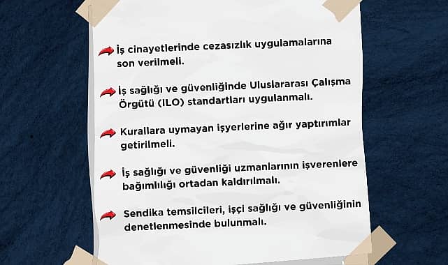 CHP İstanbul Milletvekili Oğuz Kaan Salıcı, İstanbul Tuzla’da tersanede yaşanan iş kazasında bir işçi ile Kocaeli’nin Derince ilçesinde Toprak Mahsulleri Ofisi (TMO) silosunda meydana gelen patlamada ağır yaralanan Elif Dayıoğlu’nun bugün yaşamını yitirdiğini belirterek, "Geçen ay 182 işçi çalışırken yaşamını yitirdi. Bu kadar sistematik bir şey kaza olamaz; cinayettir" dedi.CHP İstanbul Milletvekili Oğuz Kaan Salıcı, İstanbul Tuzla’da tersanede yaşanan iş kazasında bir işçi ile Kocaeli’nin Derince ilçesinde Toprak Mahsulleri Ofisi (TMO) silosunda 7 Ağustos'ta meydana gelen patlamada ağır yaralanan Elif Dayıoğlu’nun bugün yaşamını yitirmesiyle ilgili sosyal medya hesabından açıklama yaptı. Salıcı’nın paylaşımı şöyle:“Bugün iki acı haber aldık. Derince TMO’daki patlamada yaralanan kardeşimizi ve Tuzla’da bir işçimizi kaybettik. İşçi Sağlığı ve İş Güvenliği Meclisi’ne göre, geçen ay 182 işçi çalışırken yaşamını yitirdi. Bu kadar sistematik bir şey kaza olamaz; cinayettir. Mesele, yaşam hakkı ve can güvenliğidir”Salıcı, “Yaşam hakkı her şeyden değerlidir” notunun yer aldığı bir afişi de paylaştı. Afişte, işçi cinayetlerine karşı çözüm önerilerini sıraladığı şu ifadeler yer aldı:“İş cinayetlerinde cezasızlık uygulamalarına son verilmeli. İş sağlığı ve güvenliğinde Uluslararası Çalışma Örgütü (ILO) standartları uygulanmalı. Kurallara uymayan işyerlerine ağır yaptırımlar getirilmeli. İş sağlığı ve güvenliği uzmanlarının işverenlere bağımlılığı ortadan kaldırılmalı. Sendika temsilcileri, işçi sağlığı ve güvenliğinin denetlenmesinde bulunmalı.”