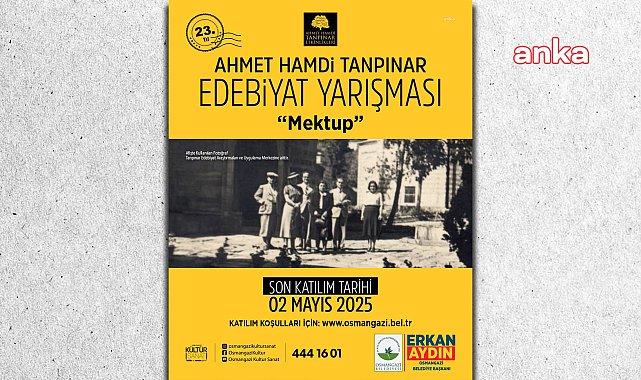 (BURSA) - Osmangazi Belediyesi tarafından düzenlenen "Ahmet Hamdi Tanpınar Edebiyat Yarışması" için başvurular başladı. Bu yıl 'mektup' dalında düzenlenecek yarışmaya başvurular, 2 Mayıs 2025 tarihine kadar devam edecek. Osmangazi Belediyesi’nin 2001 yılından bu yana geleneksel olarak düzenlediği 'Ahmet Hamdi Tanpınar Edebiyat Yarışması'nın başvuru duyurusu yapıldı. Edebiyatseverler tarafından ilgiyle takip edilen yarışma, bu yıl 'mektup' dalında düzenlenecek. Yurtiçi ve yurtdışından 18 yaşını doldurmuş herkes yarışmaya katılabilecek. Yarışmaya katılmak isteyenler, eserlerini [email protected] e-posta adresine gönderebilecek.1 eser başvuru yapılabilecek Yarışmaya başvuranların eser üzerinde rumuz kullanılması gerektiği bildirildi. Yarışmaya daha önce internet ve sosyal medya mecralarında yayımlanmış, herhangi bir yarışmada ödül kazanmış veya dereceye girmiş eserler ile başvuru yapılamayacak. Her katılımcının en fazla 1 eser ile başvuruda bulunabileceği yarışmaya başvurular, 2 Mayıs 2025 Cuma günü mesai bitiminde son bulacak.Yayımlanmaya uygun bulunan eserler kitaplaştırılacakHaziran ayı içerisinde düzenlenecek tören ile sonuçların açıklanacağı Ahmet Hamdi Tanpınar Edebiyat Yarışması’nda birinciye 25 bin, ikinciye 20 bin, üçüncüye 15 bin, mansiyon kazanan üç yarışmacıya ise 5’er bin lira para ödülü verilecek. Ayrıca jüri üyelerinin yayımlanmaya uygun bulduğu eserler kitaplaştırılacak. Yarışmanın jüri üyeleri arasında Prof. Dr. Turan Karakaş, Metin Önal Mengüşoğlu, Mustafa Muharrem, İhsan Deniz ve Mustafa Başpınar yer alacak.Yarışmaya katılmak isteyenler, belediyenin internet adres yarışma hakkında detaylı bilgiye ulaşabiliyor.