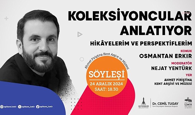 (İZMİR)- Ünlü yapımcı Osmantan Erkır, “Koleksiyoncular Anlatıyor” başlığıyla düzenlenen söyleşi dizisi kapsamında Ahmet Piriştina Kent Arşivi ve Müzesi’ne (APİKAM) konuk olacak. Televizyon programlarıyla tanınan Erkır, bu kez pek bilinmeyen bir yönüyle, koleksiyoncu kimliğiyle İzmirlilerle bir araya gelecek. Ahmet Piriştina Kent Arşivi ve Müzesi’nin geçen ay başlattığı "Koleksiyoncular Anlatıyor: Hikâyelerim ve Perspektiflerim" başlıklı söyleşi dizisine ünlü yapımcı Osmantan Erkır konuk oluyor. Türkiye’de büyük ses getiren televizyon yapımlarıyla tanınan Erkır, son dönemlerde koleksiyoncu kimliğiyle gerçekleştirdiği çalışmalarla da dikkat çekiyor. Fotoğraf, taş plak, afiş, kitap ve televizyon koleksiyonları bulunan Erkır, Nejat Yentürk moderatörlüğünde 24 Aralık Salı günü saat 18.30’da, Ahmet Piriştina Kent Arşivi ve Müzesi’nde düzenlenecek söyleşide İzmirlilerle buluşacak.Sahafta çıkan belge, tarihe ışık tutacakOsmantan Erkır ayrıca, “Gazi Mustafa Kemal ile Bir Tren Yolculuğu” başlıklı bir sunum gerçekleştirecek. Atatürk’ün 30 Eylül 1929 günü Ankara’ya yaptığı seyahatte özel vagonundaki sekiz misafir kimlerdi, neler konuşuldu, gramofonda hangi şarkılar dinlendi, bu yolculukta neler yaşandı gibi sorular yanıt bulacak. Yolculuktan tam 90 yıl sonra bir sahafta ortaya çıkan çok özel bir belgenin ışığında Osmantan Erkır’ın anlatımıyla Atatürk’le bir tren yolculuğuna çıkılacak.“Koleksiyoncular Anlatıyor: Hikâyelerim ve Perspektiflerim”Erkır söyleşide, uzun yıllardır sürdürdüğü koleksiyonculuk serüvenini anlatacak, bu alanda elde ettiği deneyimlerini dinleyicilerle paylaşacak. "Koleksiyoncular Anlatıyor: Hikâyelerim ve Perspektiflerim" söyleşi dizisi, İzmir Büyükşehir Belediyesi Kültür ve Sosyal İşler Dairesi’ne bağlı Kent Arşivi ve Müzeler Şube Müdürlüğü tarafından düzenleniyor. Söyleşi dizisi kapsamında ülkemizin önde gelen koleksiyoncuları İzmirlilerle bir araya gelerek kendi koleksiyonculuk yaklaşımlarını paylaşıyor; dinleyiciler, koleksiyonculuğun bir hobi olmasının ötesinde, bir yaşam tarzı ve bilimsel bir faaliyet olduğuna tanıklık ediyor.